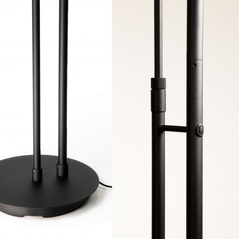 De uplight is zowel naar boven als naar beneden te draaien, zodat je de verlichting perfect kunt afstemmen op de ruimte. De leeslamp is in hoogte verstelbaar en voorzien van een handige touch button, terwijl de uplight via een discrete knop op de stang te bedienen is. Beide lampen zijn apart regelbaar, waardoor je altijd de juiste balans vindt tussen sfeer- en functioneel licht.