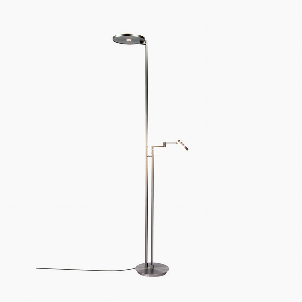 Uplight vloerlamp met leeslamp – Nikkel – LED