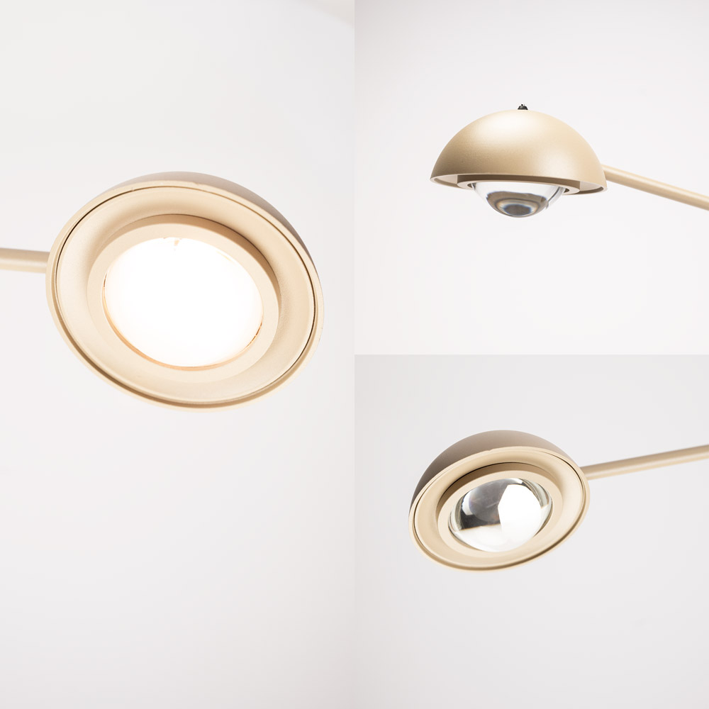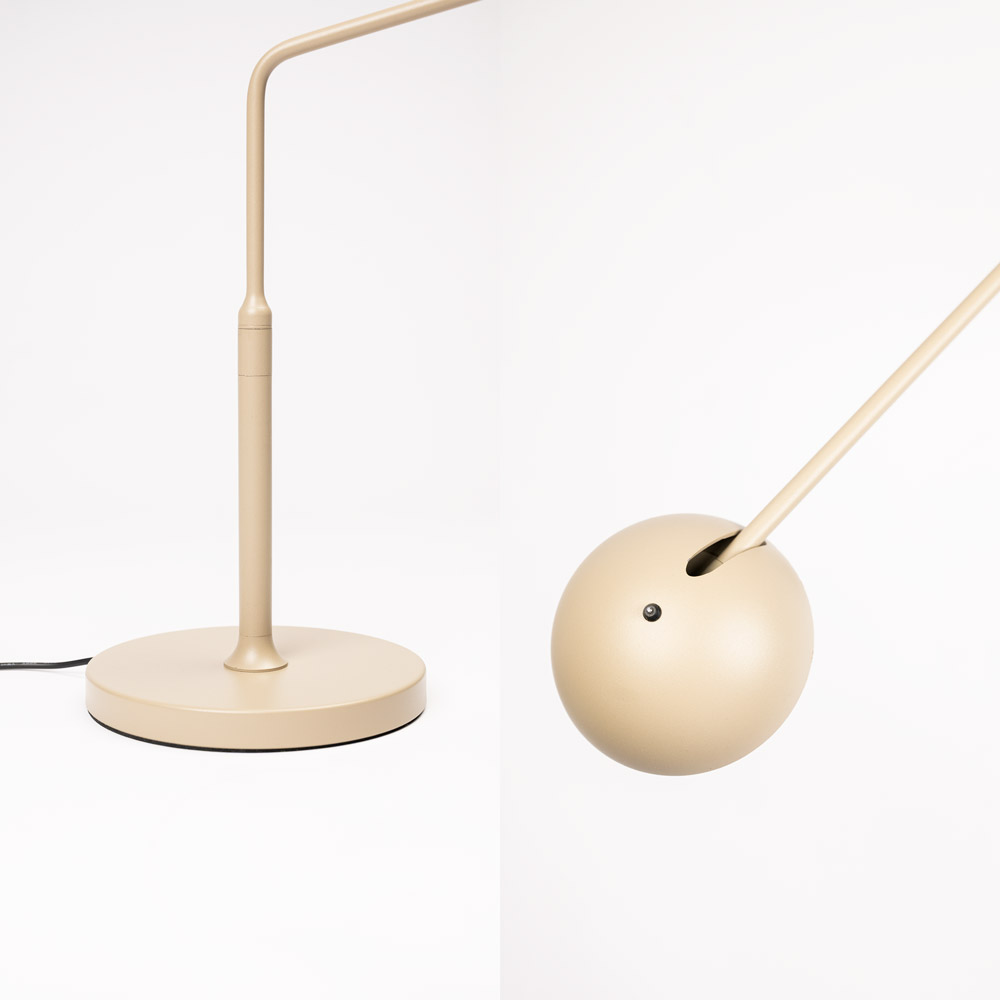 • Slanke design tafellamp met subtiel gebogen arm en compacte ronde voet • Verkrijgbaar in beige, brons en zwart • Zeer krachtige lichtopbrengst – geeft verrassend veel licht • Geïntegreerde LED met instelbare lichtkleur van 2200K tot 3000K • Dimbaar via touchdimmer, met aan/uit-functie op het hoedje • Kantelbare kap voor gericht licht op een bureau, dressoir of nachtkastje • Perfect als bureaulamp of als krachtige leeslamp naast bed • Mooi te combineren met de Pico vloerlamp