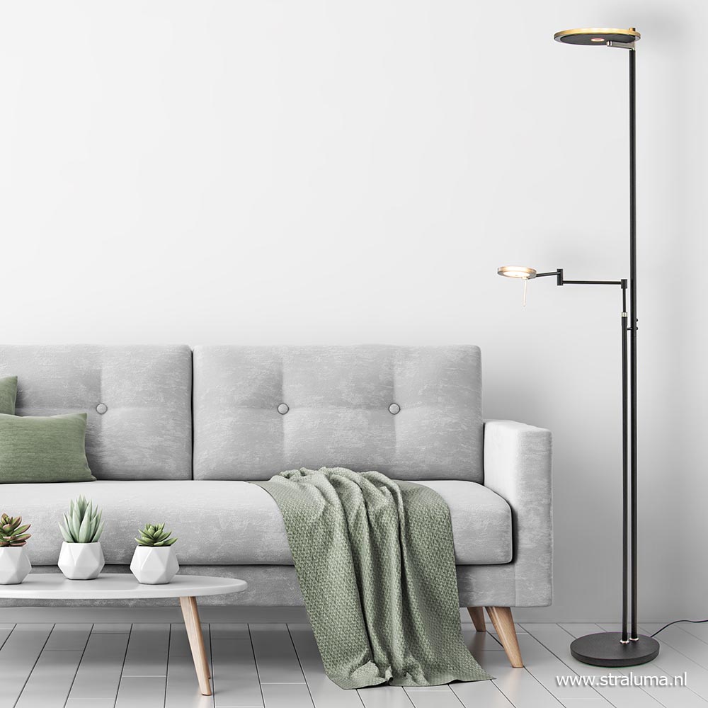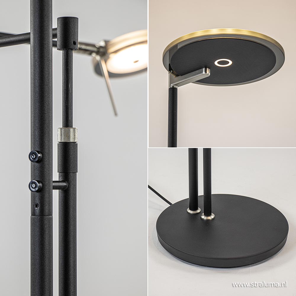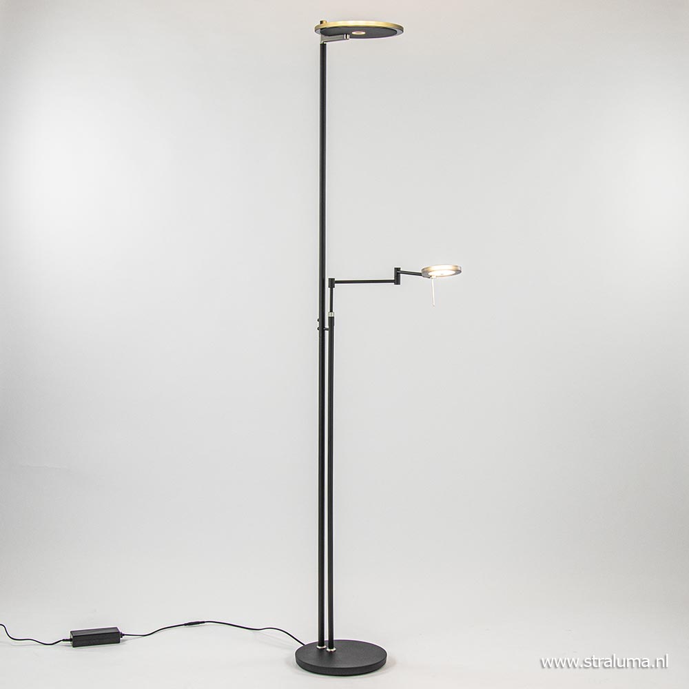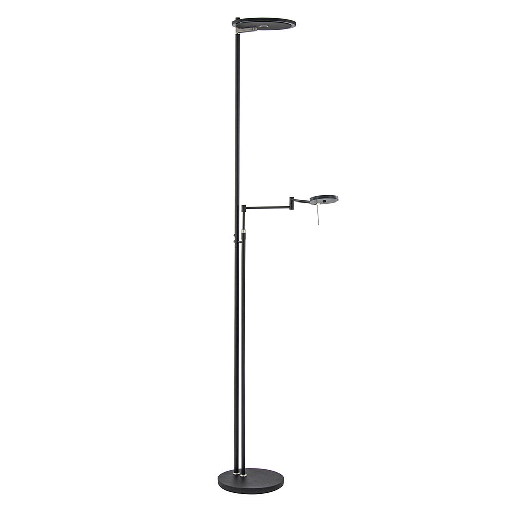 – hoogte: 185 cm – uplighter: Ø25×2 cm – leeslamp: Ø11×2 cm – voet: Ø27×3 cm – inclusief LED – 2700 Kelvin – 4000+1000 lumen – dimbaar – verstelbare leesarm – energiezuinig | A+ – zwart snoer: 235 cm