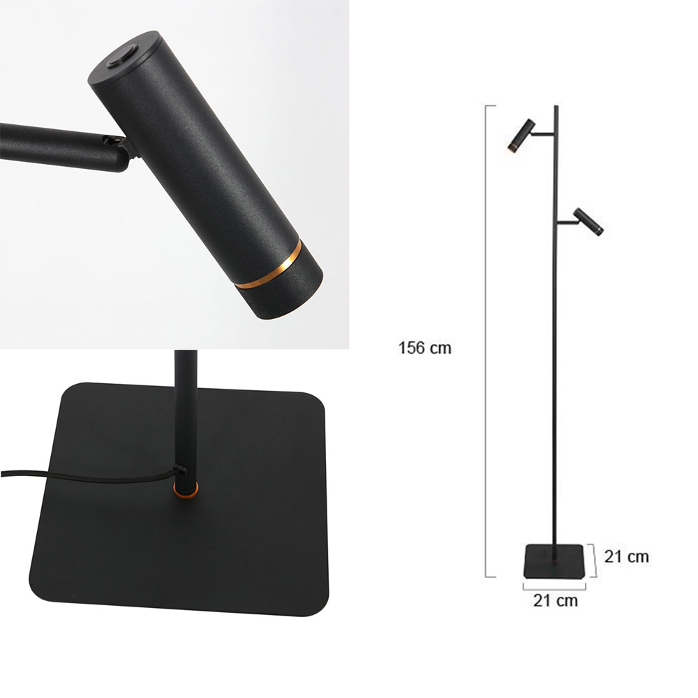LED Vloerlamp – 2-Lichts – Zwart – Touchdimmer – Geïntegreerde LED