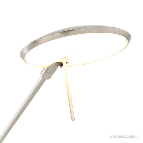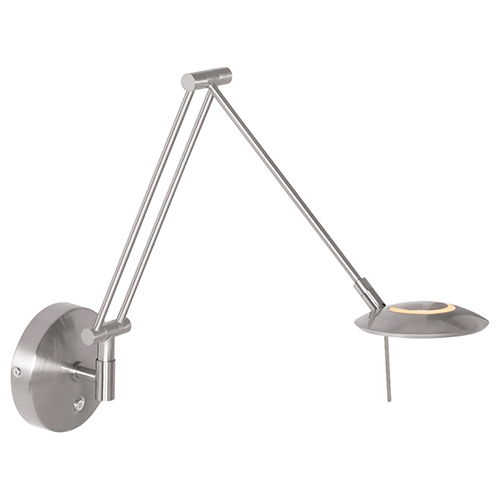 Een ideale wandlamp voor naast uw bank of bij uw bureau. De staal geborstelde lamp is gemakkelijk te verstellen d.m.v de twee scharnieren in de arm en daarnaast is ook de kap te draaien en te kantelen. Groot voordeel van deze wandlamp is dat deze niet op een contactdoos hoeft te worden aangesloten, omdat de moderne lamp wordt geleverd inclusief transparant snoer, zo kunt u de lamp overal ophangen. De kap is voorzien van LED, waardoor de lamp energiezuinig is, gemakkelijk te bedienen is en te dimmen is via de schakelaar op de wandbevestiging.