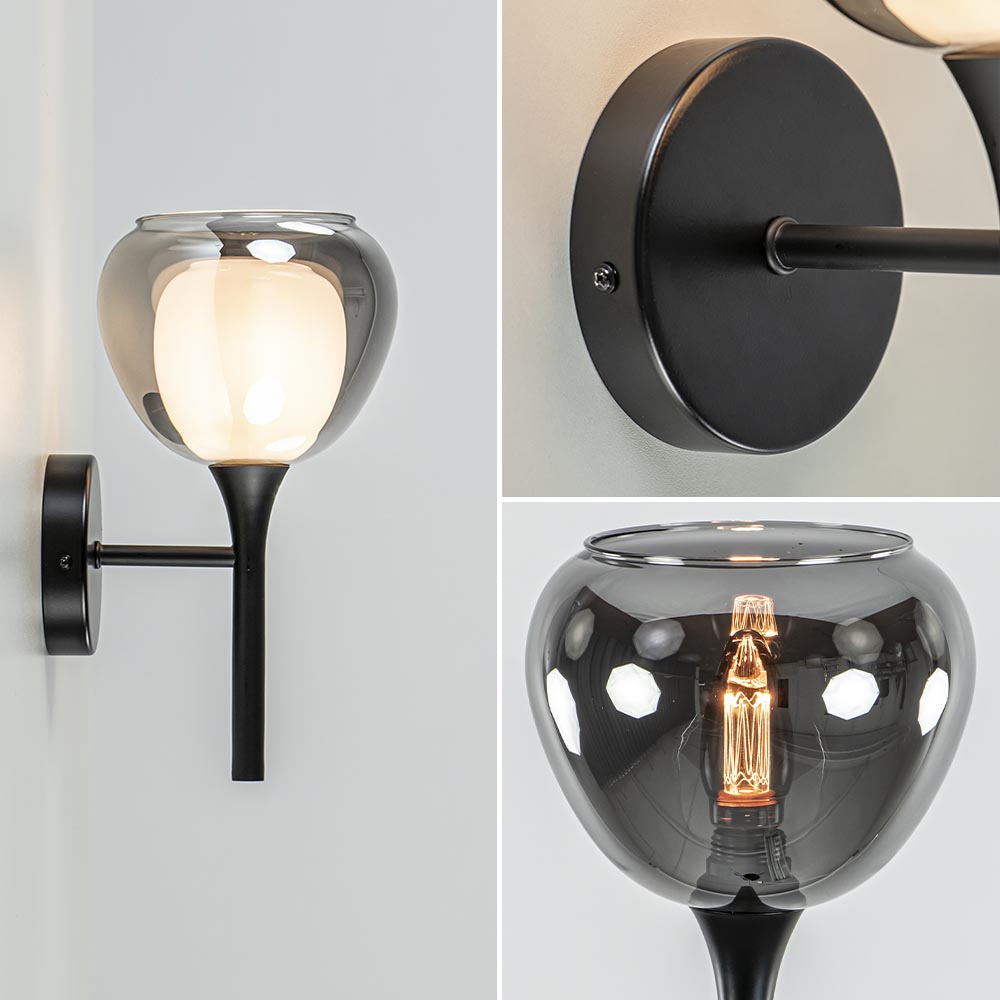 / Lampen / Wandlampen / Moderne wandlamp zwart met smoke glas