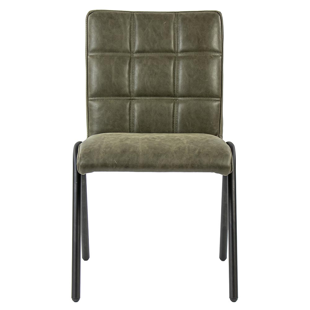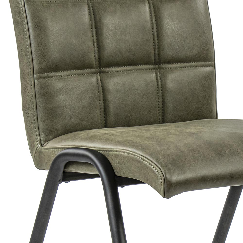 Homepagina / Wonen / Eetkamerstoelen / Olijf groene eettafelstoel leder met zwarte pootjes