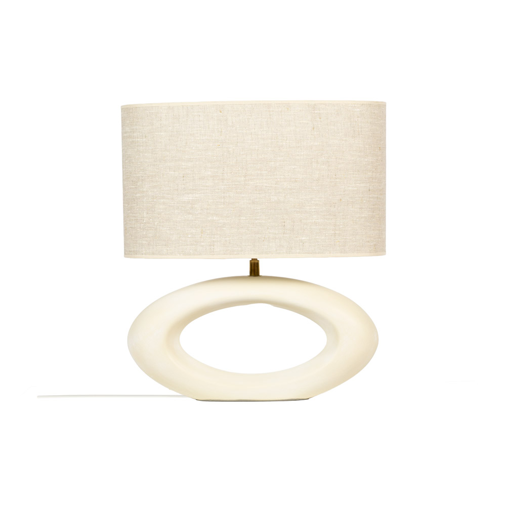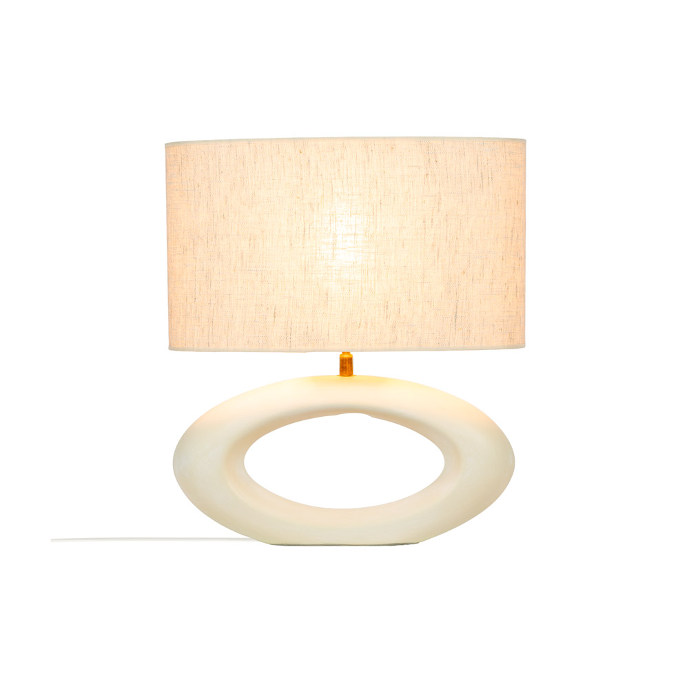 Keramische tafellamp met stoffen kap – mat gebroken wit