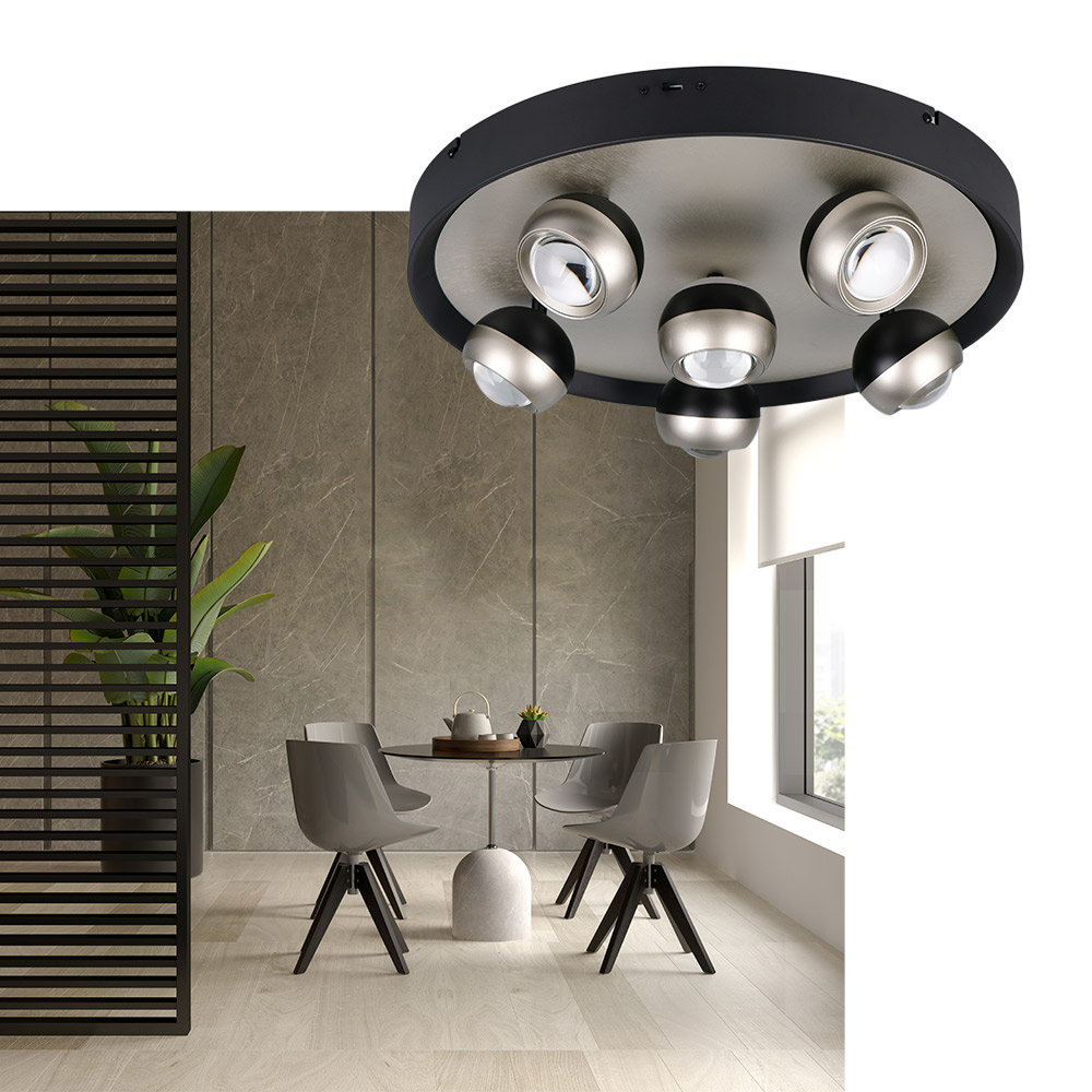 Homepagina / Lampen / Opbouwspots / ORBIT moderne plafonnière 6 LED matzwart en zilver