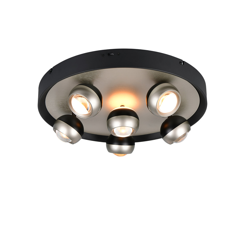 Trio Orbit Plafondlamp – Zwart/Staalkleur – 6-lichts – LED