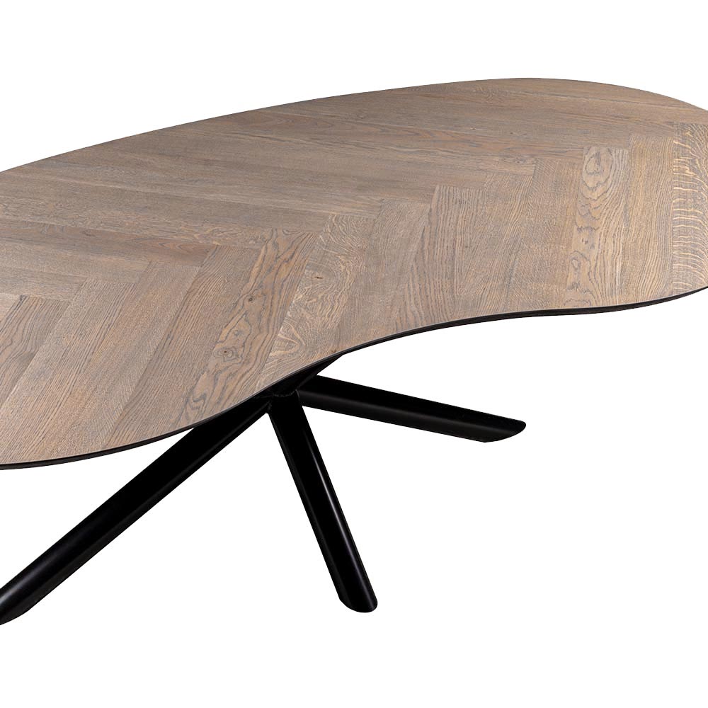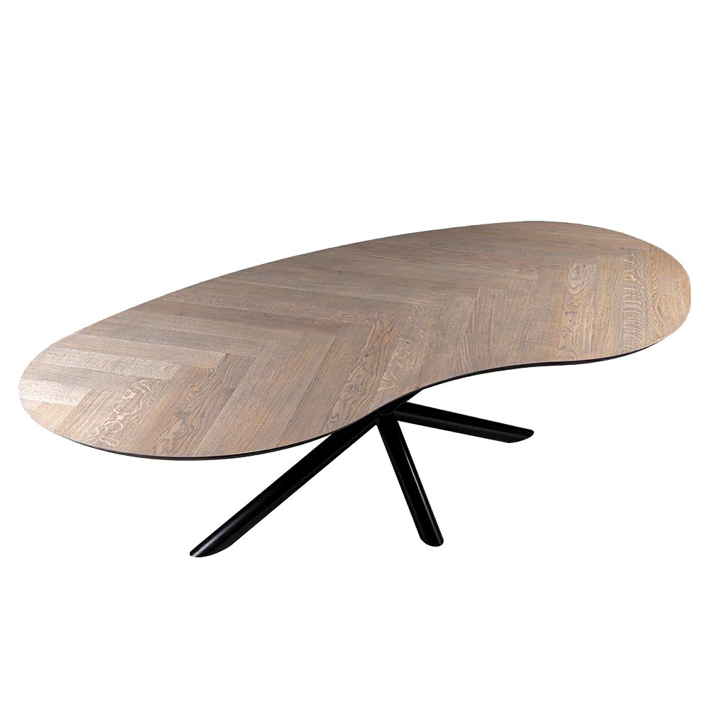 / Wonen / Eettafels / Organische eettafel eiken met zwarte poot en visgraat