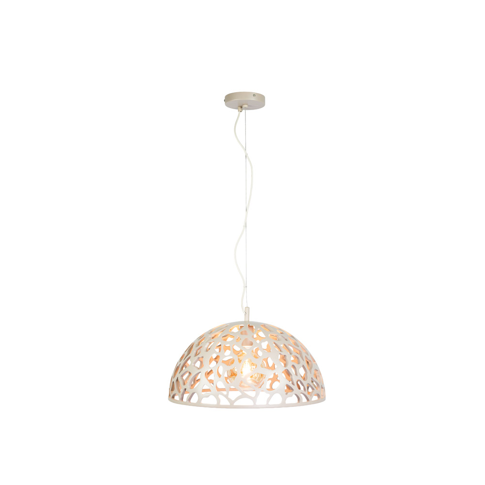 De The Open hanglamp is een moderne blikvanger met een unieke opengewerkte koepelkap. Het speelse patroon zorgt voor een prachtig lichtspel op muur en plafond, terwijl de ruime vorm juist rust en elegantie toevoegt aan je interieur. Dankzij het extra lange snoer van maar liefst 3 meter is deze lamp ideaal voor hoge plafonds, vides of boven een royale eettafel.