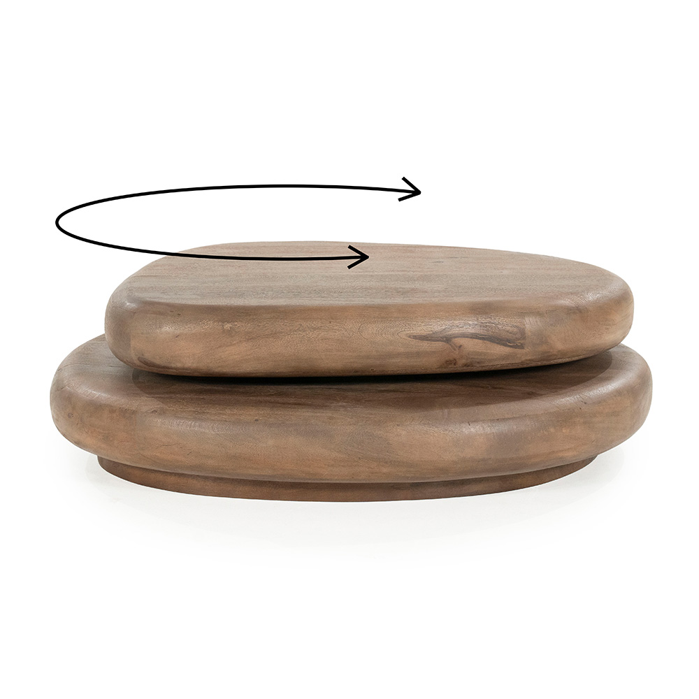 Deze unieke bruine salontafel Kabo van By-Boo is een echte blikvanger dankzij de speelse, organisch gevormde lagen. Leuk extra gegeven is dat het bovenste blad draaibaar is waardoor je zelf het uiterlijk bepaald.