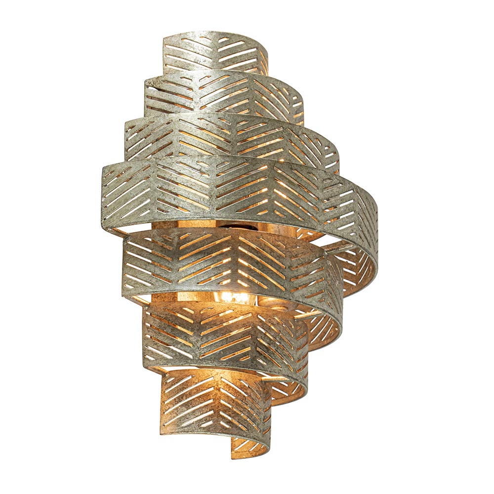 Prachtig in een hal, slaapkamer of woonkamer. Deze mooie decoratieve wandlamp maakt het interieur helemaal af. De wandlamp is volledig gemaakt van metaal en uitgevoerd in het ambachtelijk zilver. Dit geeft de lamp een robuuste look die wordt versterkt door de bewerking in het metaal. De zilveren wandlamp is opgebouwd uit losse ringen in diverse maten. Van binnen is de wandlamp voorzien van twee E14 lichtpunten. De robuuste wandlamp is niet voorzien van een snoer en dient direct op een stroompunt te worden aangesloten. De wandlamp is dimbaar middels een externe dimmer (exclusief).