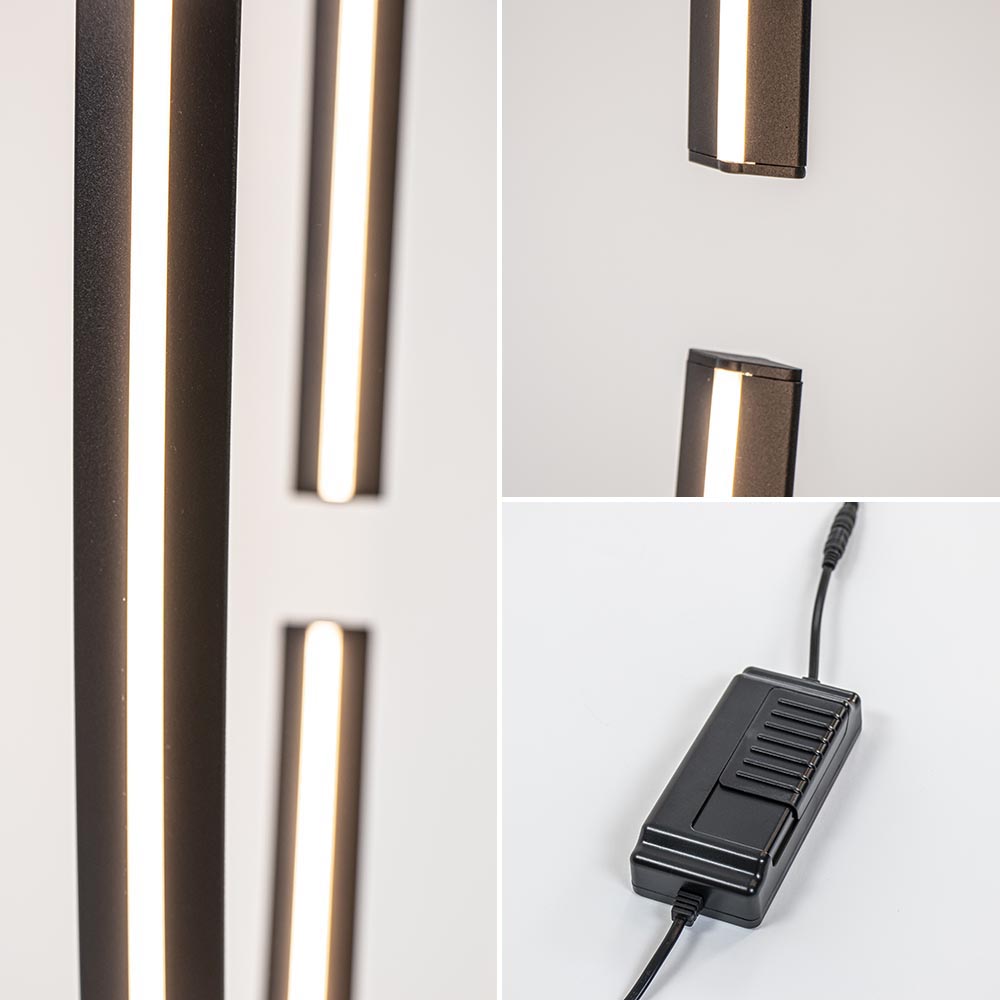 – hoogte: 124 cm – voet: 29x19x0,5 cm – inclusief LED – warm wit – 2700 Kelvin – 2000 lumen – zwart – zwart snoer: 255 cm – dimbaar, inclusief dimmer