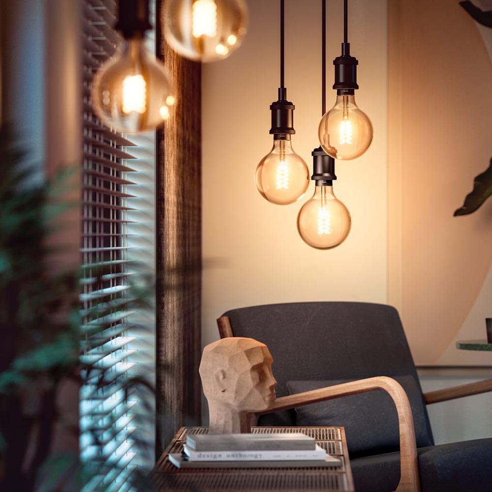 – Philips Hue White – Bluetooth app control – flame, vintage look – E27 – LED – 7 W – 550 lumen – 2100 Kelvin – afm: Ø19,8×12,6 cm – levensduur: 15.000 branduren – dimbaar