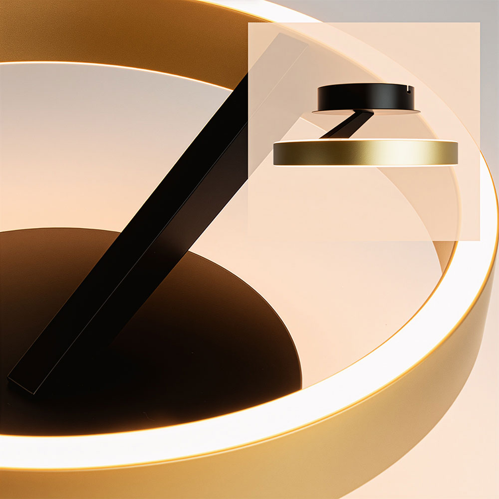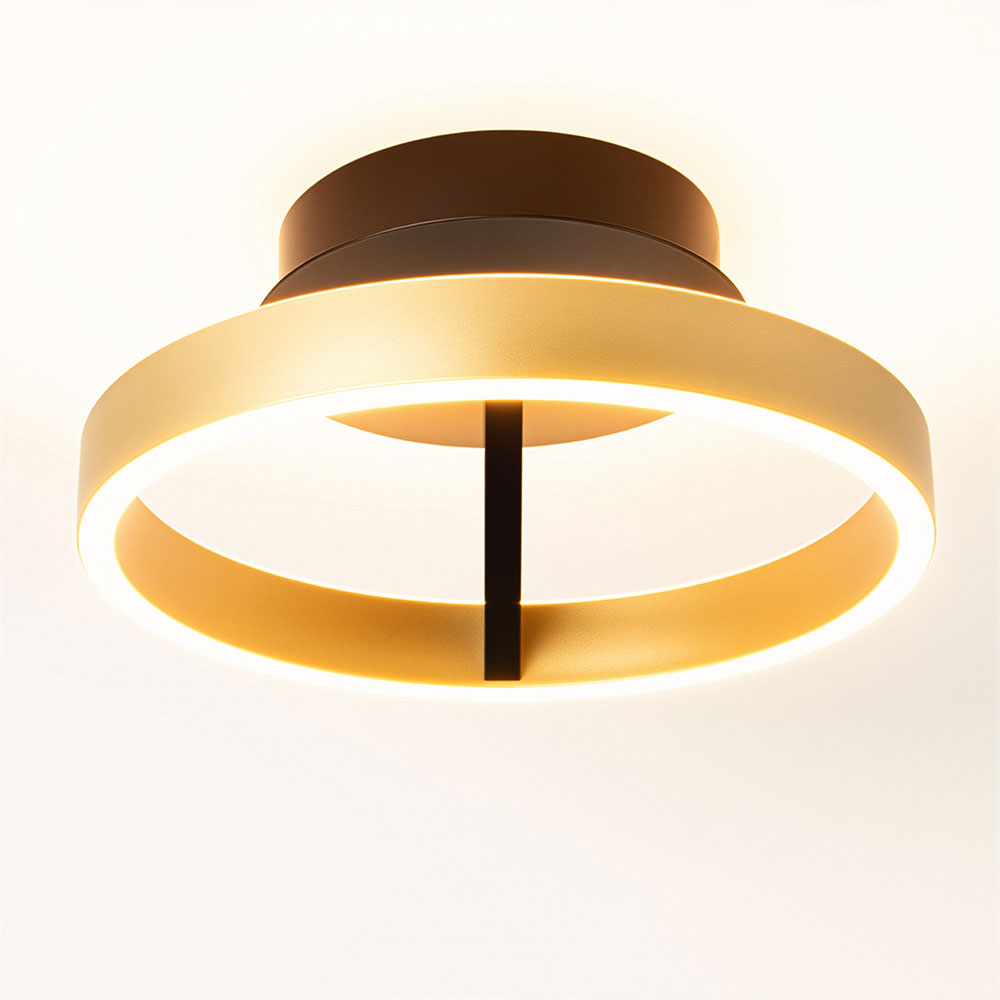 De Pilota van Freelight is een moderne plafondlamp die direct sfeer toevoegt aan je interieur. De ronde ring in messingkleur met zwart detail zorgt voor een luxe en eigentijdse uitstraling. Dankzij het minimalistische design past deze lamp perfect in de woonkamer, hal of slaapkamer.