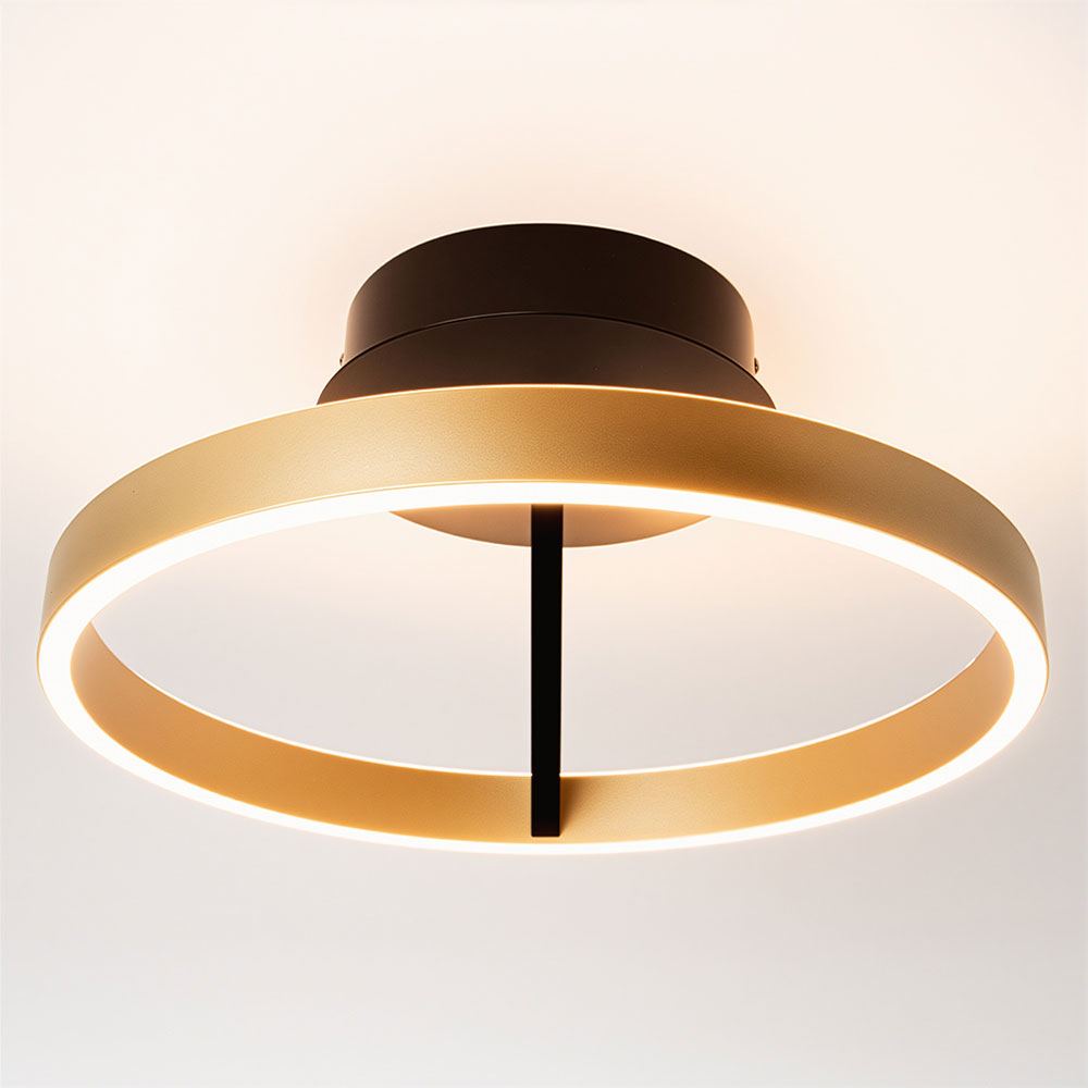 De Pilota van Freelight is een moderne plafondlamp die luxe en sfeer toevoegt aan je interieur. De ronde ring in messingkleur met zwart detail geeft een eigentijdse uitstraling en laat zich moeiteloos combineren met diverse woonstijlen. Perfect geschikt voor de woonkamer, hal of slaapkamer.