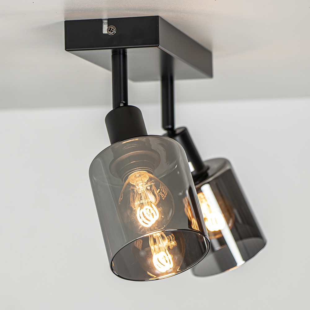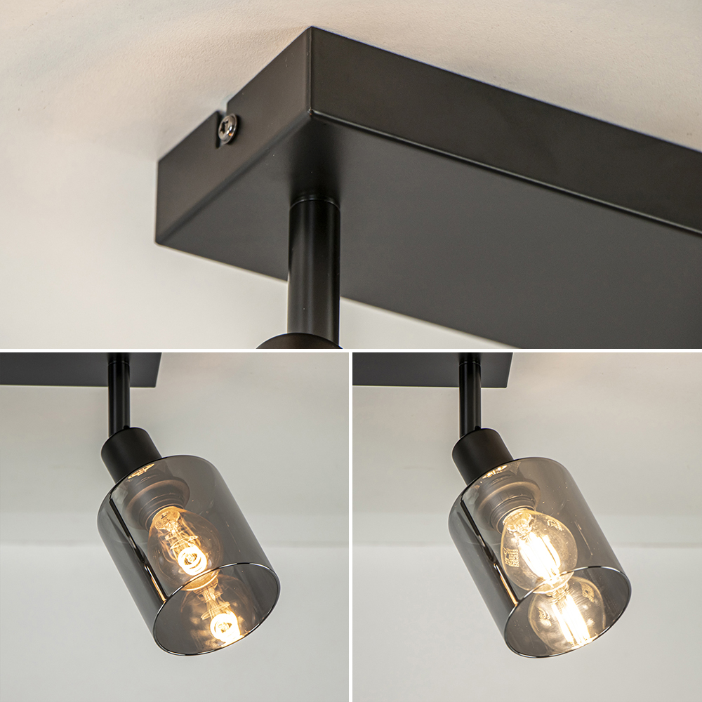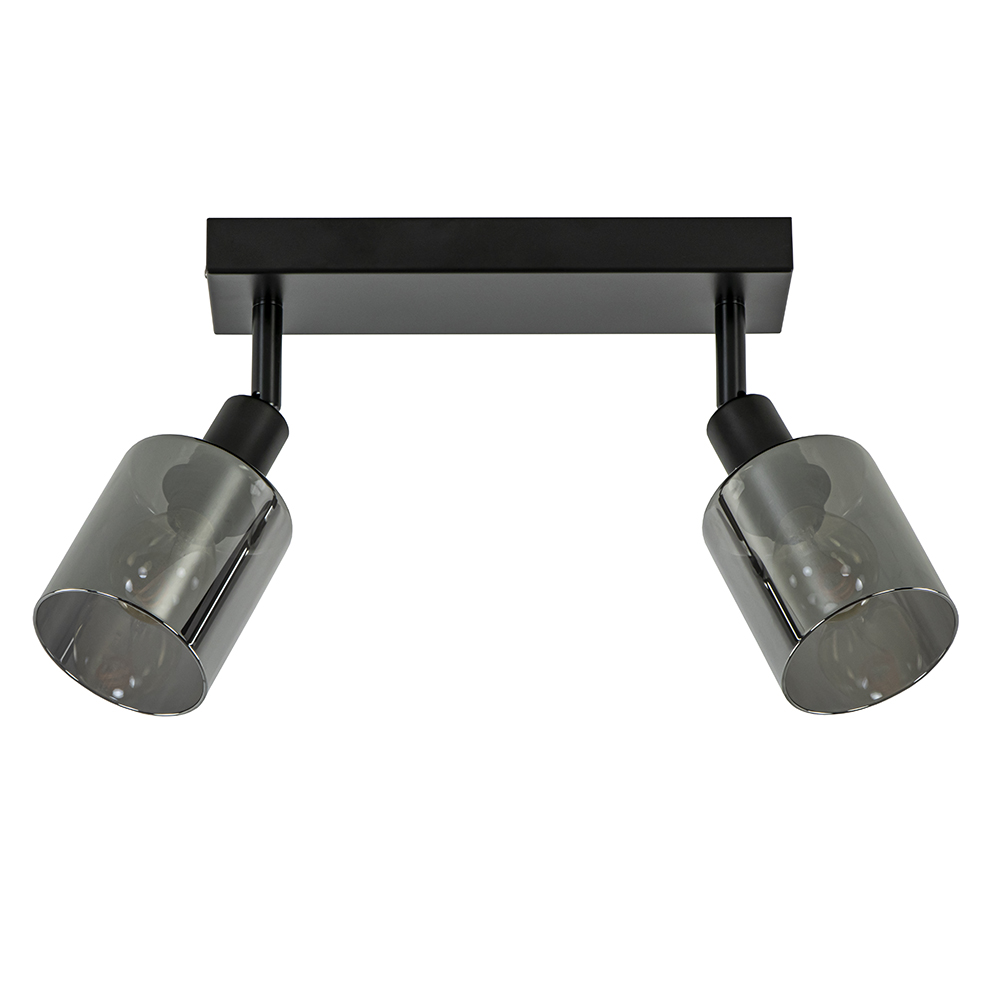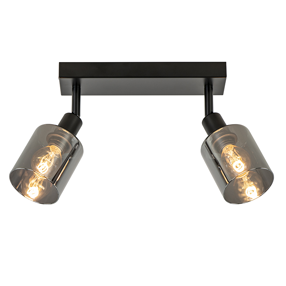 Homepagina / Lampen / Plafondlampen / Plafondbalk 2L zwart met smoke glas