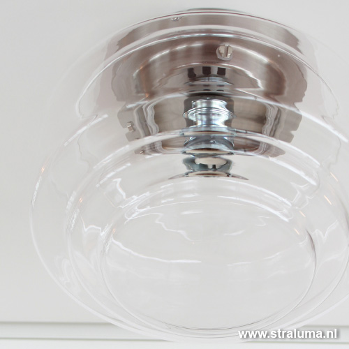 Art Deco, de stijl wordt onder andere gekenmerkt door geometrische figuren. Deze Glazen Plafonnière art deco is hier een schoolvoorbeeld van:” Prachtig in een jaren 30 woning.”‘ Het transparante glas zorgt voor een mooie frisse verschijning. Een leuke keuze voor een lamp als deze is een kooldraadlamp. Ideaal in de slaapkamer, keuken of woonkamer.