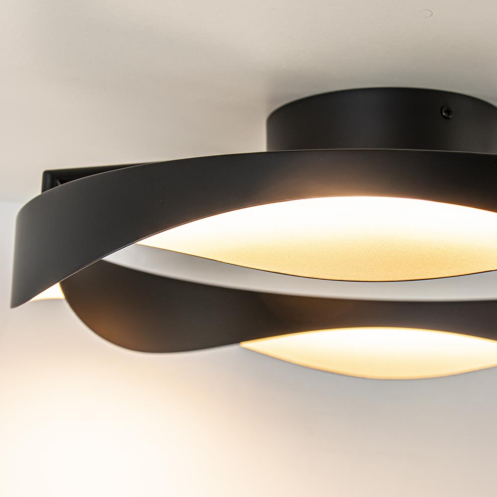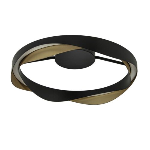 – afm: Ø45×13 cm – kap: Ø45x3x6 cm – bevestiging: Ø15×4,5 cm – metaal – zwart/goud – inclusief LED – 2880 lumen – 2700 Kelvin – dimbaar (exclusief)