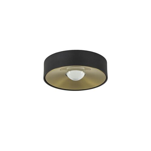 – afm: Ø15×4 cm – metaal – mat zwart / goud – inclusief LED – 1350 lumen – 1800 – 2700 Kelvin – dim to warm (exclusief)