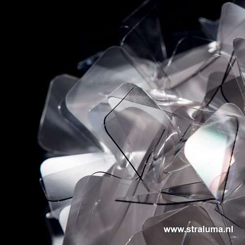 Deze grote sprankelende plafonnière is een aanwinst voor uw interieur. Het prachtige ontwerp is luchtig ondanks het formaat. De gladde kuststof elementen en de smalle geribbelde elementen zorgen voor extra diepte in dit speelse ontwerp. De plafonnière heeft een mooie lichte rookkleur.