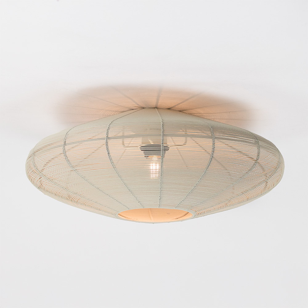 Details: – Afmetingen: Ø51×18 cm – Bevestiging: Ø10×3 cm – Materiaal: Metaal – Kleur: Crème – Fitting: E27 (excl. lichtbron)