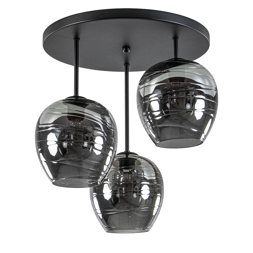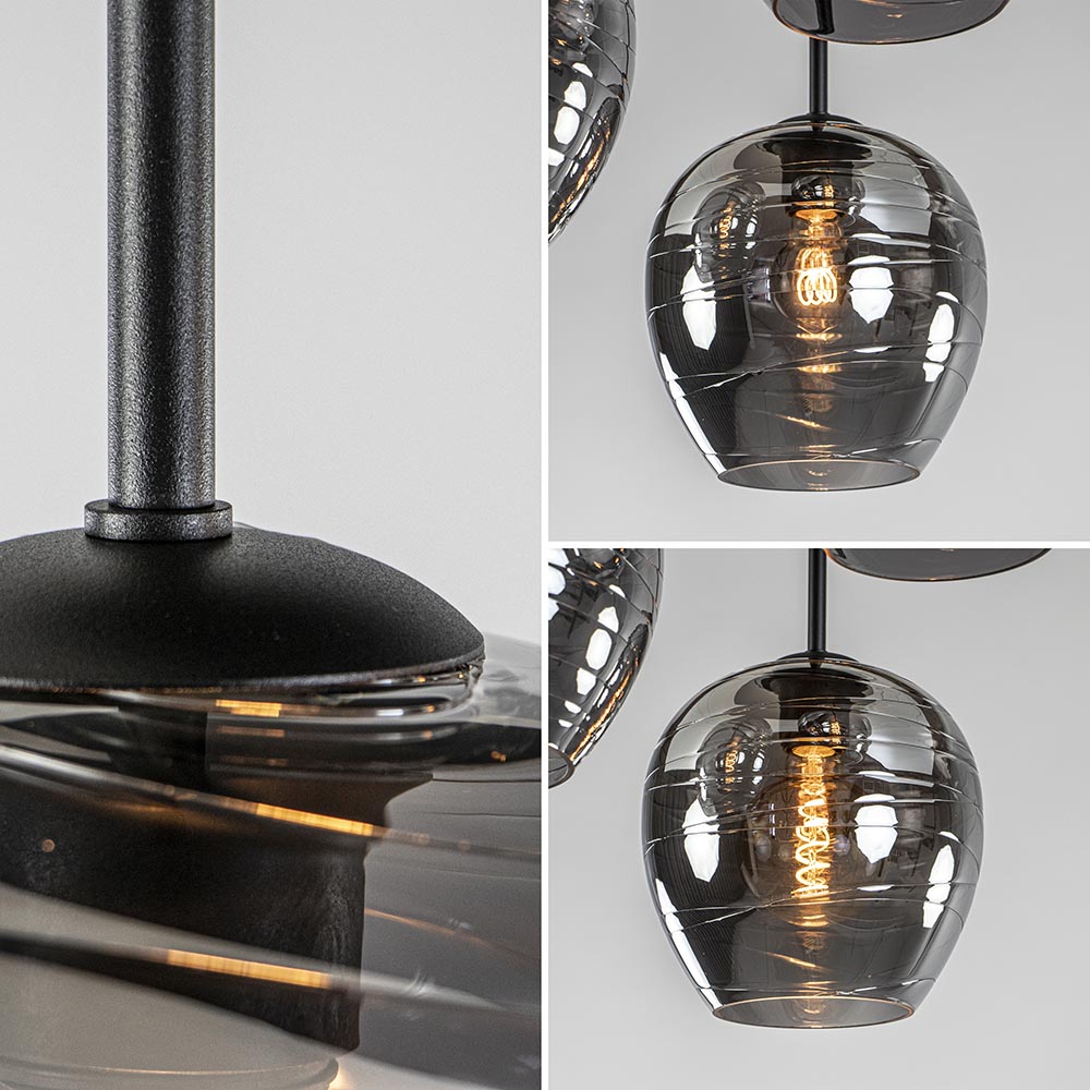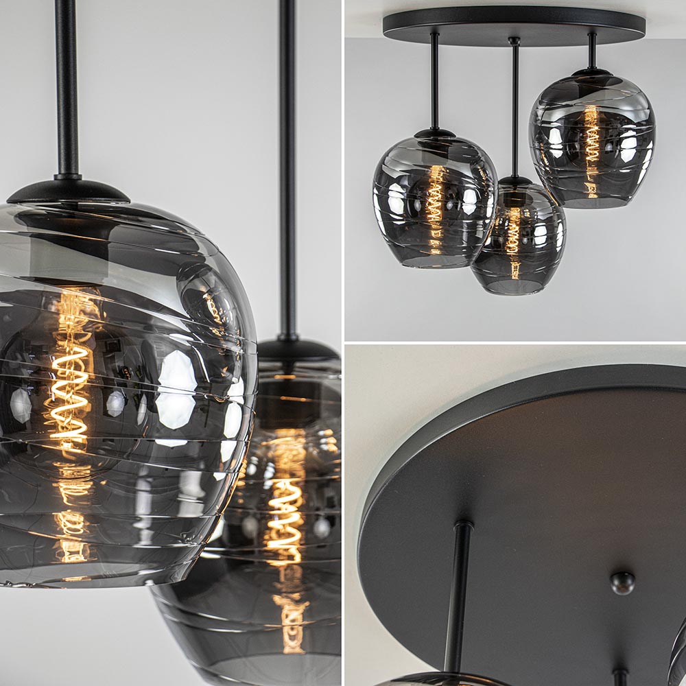 – hoogte: 50 cm – smoke glas: Ø20×20 cm – bevestiging: Ø45×2,5 cm – metaal, mat zwart – exclusief lichtbron (3x E27) – dimbaar (exclusief)