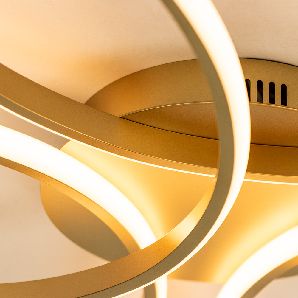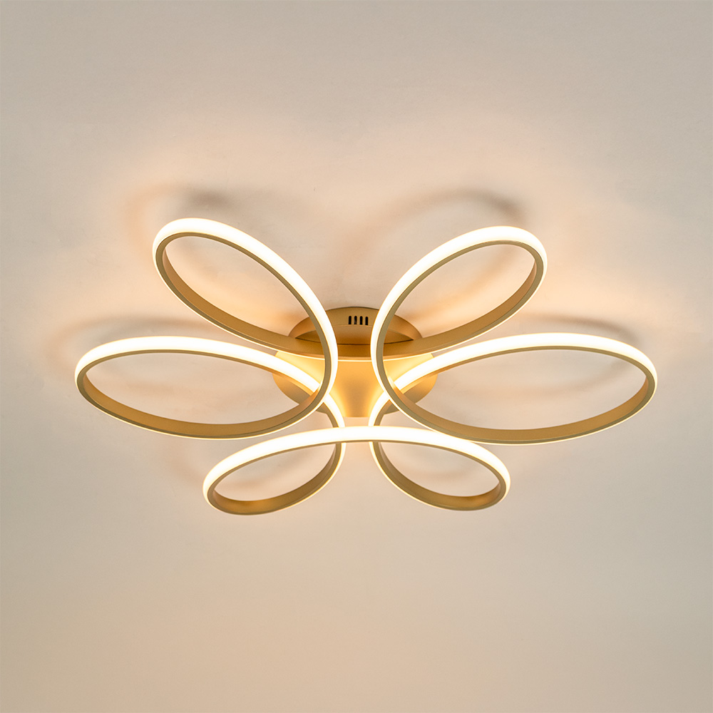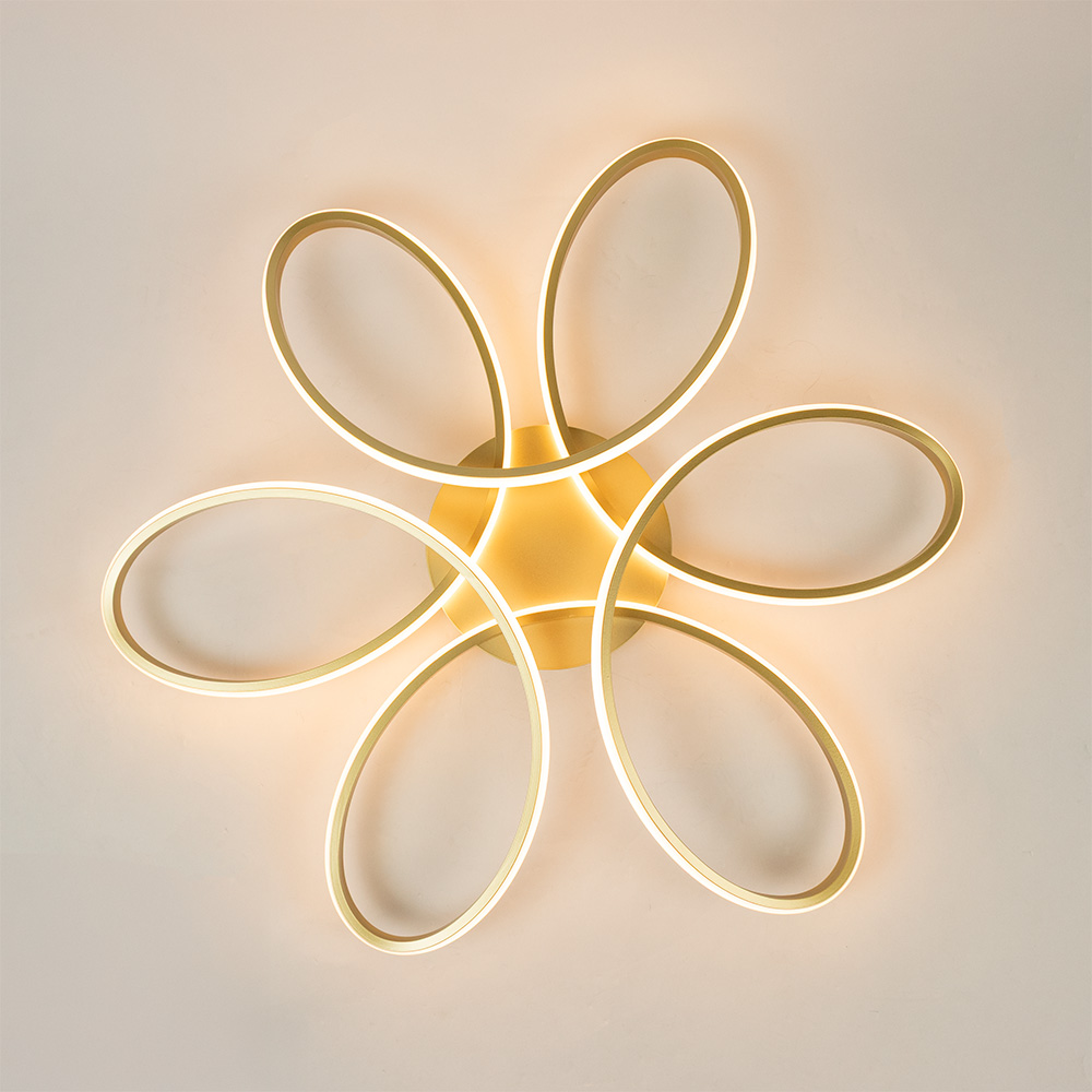 Laat je interieur tot bloei komen met plafondlamp Florina. Deze unieke designlamp in een warme goudtint is opgebouwd uit zes elegante ovalen die samen een bloemvormig patroon vormen. Het resultaat is een luchtige, speelse en tegelijk stijlvolle blikvanger die zowel overdag als ’s avonds indruk maakt. Dankzij de geïntegreerde LED-verlichting straalt de lamp een warm, diffuus licht uit dat prettig aanvoelt in elke ruimte. De matte gouden afwerking geeft een luxe uitstraling, terwijl het organische ontwerp zorgt voor een zachte en uitnodigende sfeer. Perfect voor in de slaapkamer, woonkamer of hal waar je een artistiek statement wilt maken.