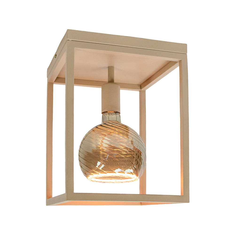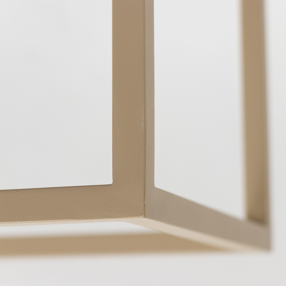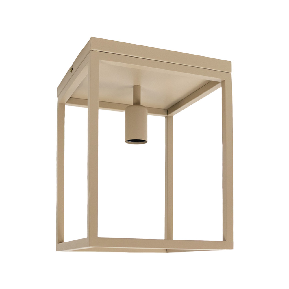 Deze moderne plafonnière heeft een strak ontwerp met een minimalistisch metalen frame in een subtiele beige tint. Het open kubusvormige ontwerp biedt een eigentijdse uitstraling, ideaal voor moderne woonruimtes. De lamp is voorzien van een enkele fitting, wat zorgt voor een directe en sfeervolle verlichting. De strakke lijnen en de eenvoudige maar elegante afwerking maken deze lamp perfect voor elke kamer die behoefte heeft aan verfijnde en functionele verlichting. Deze plafonnière biedt niet alleen licht, maar is ook een stijlvol statement in je interieur.