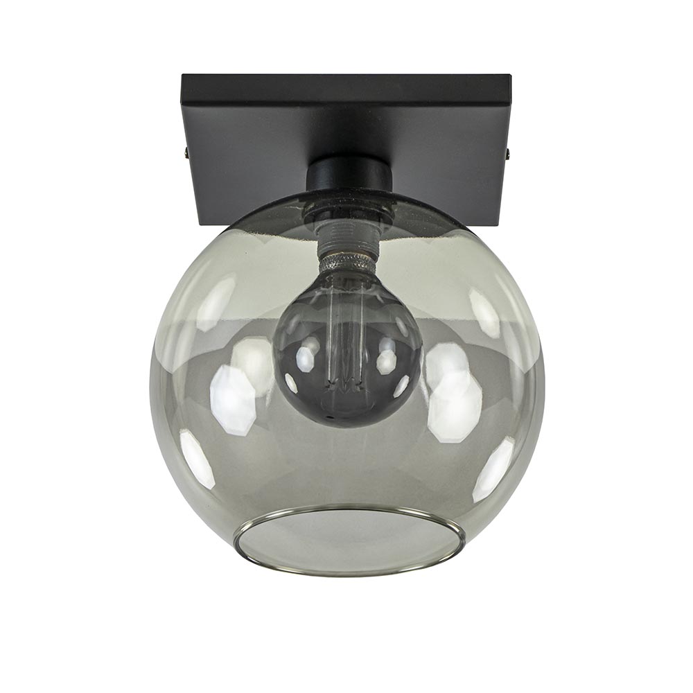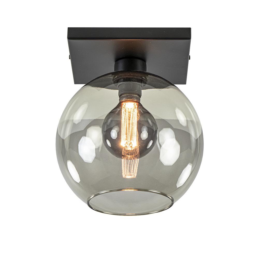 Glazen lampen zijn helemaal trendy, en in vele soorten en maten verkrijgbaar. Deze smoke glazen bol met een doorsnede van 25 CM is een ideale plafondlamp omdat deze vrijwel in elke ruimte past. De plafondlamp heeft een metalen, mat zwarte, vierkante plafondbevestiging die de lamp een stoere look geeft. De ruime opening in het glas biedt de mogelijkheid uit een ruime keus aan lichtbronnen die in de plafondlamp passen. Maak de plafondlamp dan ook helemaal af met één van onze decoratieve lichtbronnen.