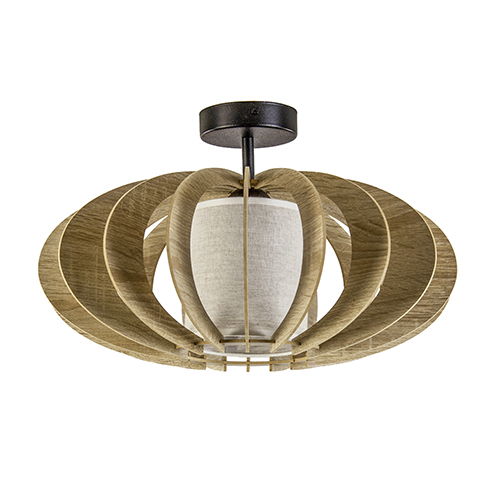 Prima geschikt voor een ruimte als de hal, slaapkamer of keuken, deze houten plafondlamp. Hout zorgt voor veel sfeer en warmte in huis en past mooi in een landelijke, moderne of botanische woonstijl. Vooral de organische vormen van de kap zorgen dat de lamp mooi past in een botanisch interieur. De kap is gemaakt uit diverse houten bogen die in het midden samen komen bij de kunststof binnenkap. Deze zorgt voor een zachte en warme verlichting en tevens dat er niet direct in de lichtbron kan worden gekeken. De zwart metalen plafondbevestiging geeft de lamp een strakke moderne look en maakt de lamp helemaal af.