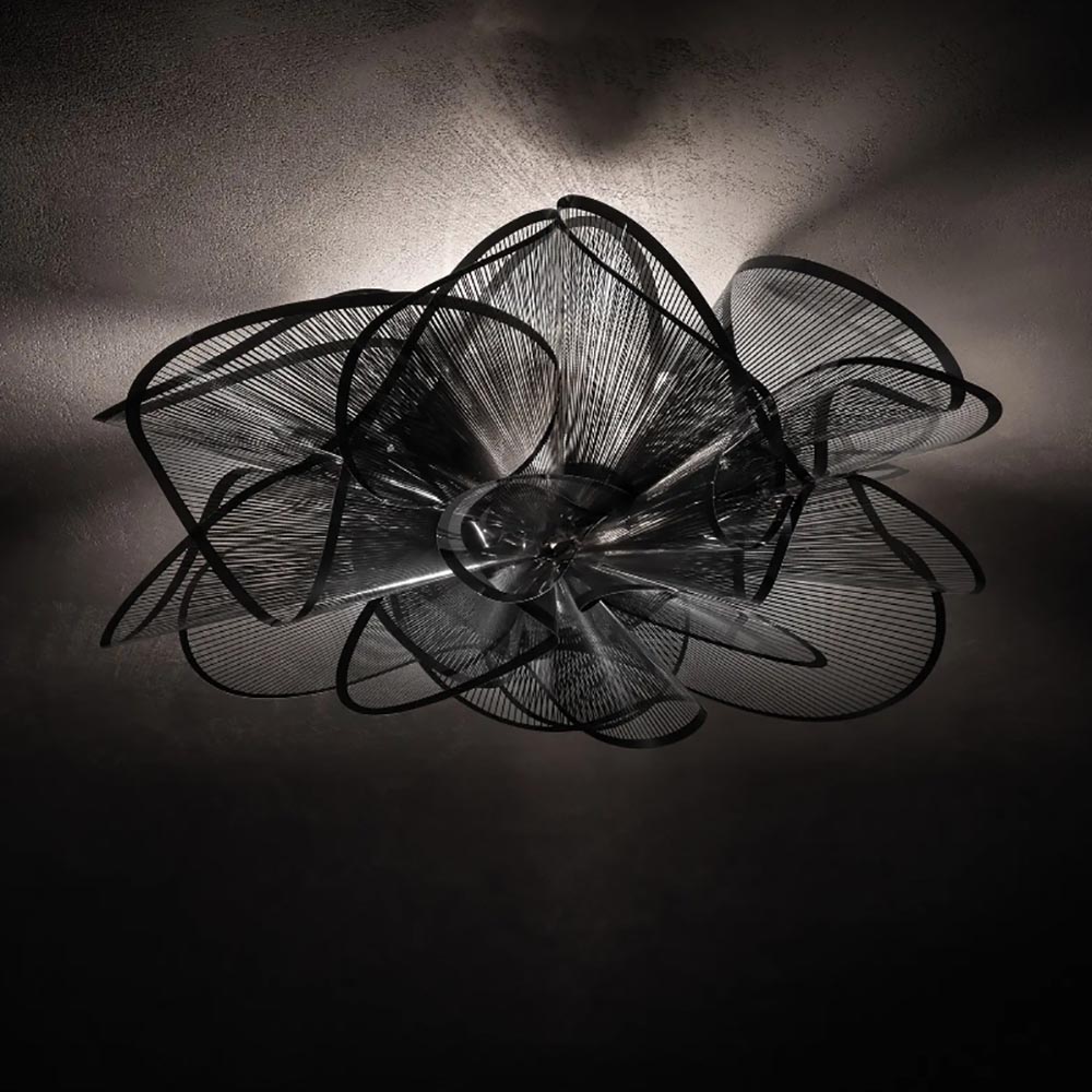 Een prachtig design van Italiaans komaf. Deze plafondlamp is volledig met hand gemaakt en bestaat uit de meest inovatieve materialen. Dit zorgt ervoor dat de elegante vormen in de kap kunnen worden toegepast. Deze is namelijk geïnspireerd op de vormen en structuren van een tutu en verse bloesem bloemen. De designlamp heeft een afmeting van 73 cm doorsnede, een echte eyecatcher aan het plafond dus. Daarnaast wordt de kap met een functioneel magnetisch systeem bevestigd op de plafondplaat. Een prachtige lamp en toevoeging aan het interieur voor de liefhebbers van design.