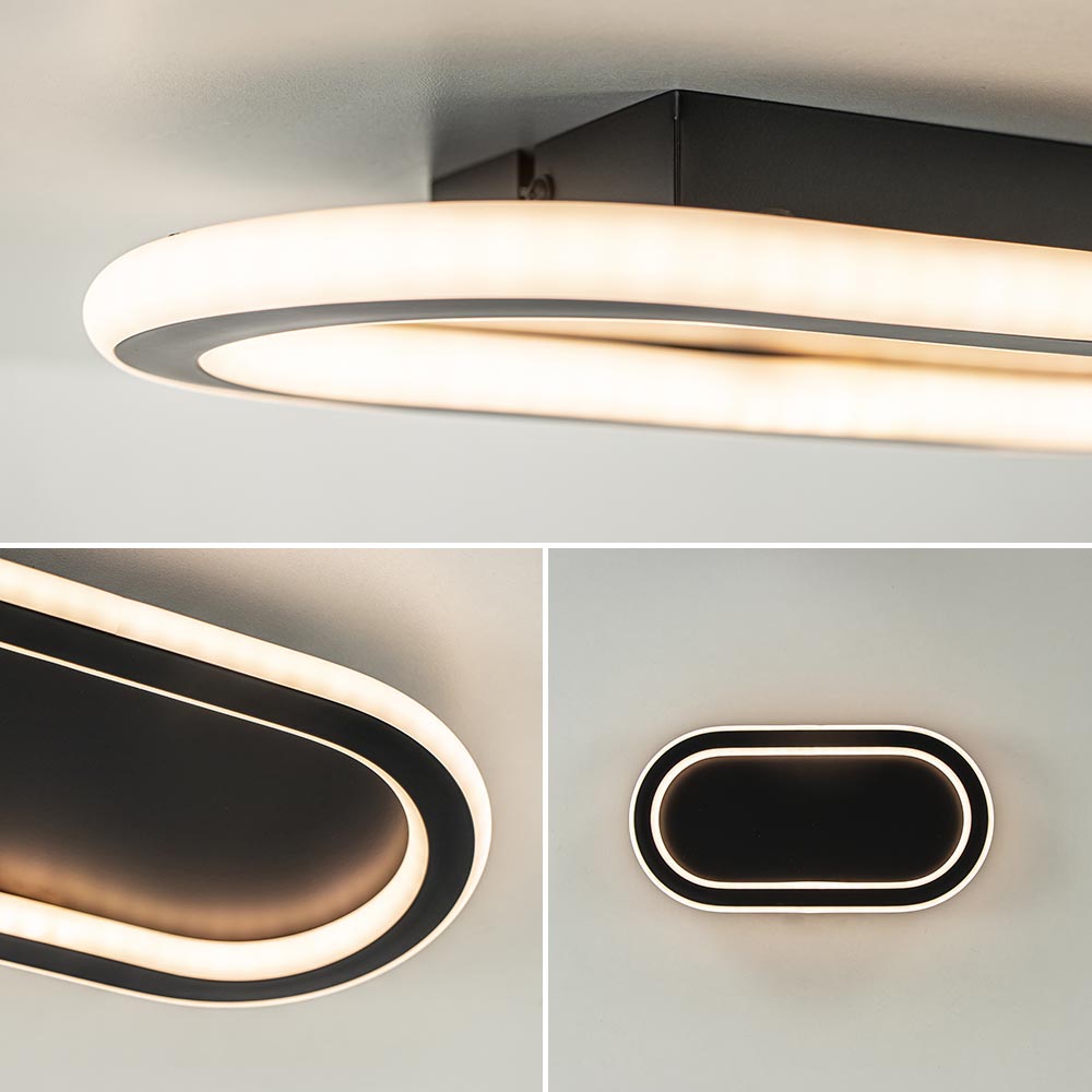 Deze kleine LED plafondlamp is een ideale sfeermaker. De ovale plafondlamp is voorzien van LED verlichting met een 3-standen dim functie. Dit werkt gemakkelijk met de gewone wandschakelaar. Er is dus geen externe dimmer nodig. De plafondlamp is uitgevoerd in het zwart en heeft een moderne look. Door de afwerking is de plafondlamp IP44 goedgekeurd waardoor deze ook in de badkamer kan worden toegepast. De LED lamp kan zowel als plafondlamp en wandlamp worden gemonteerd.