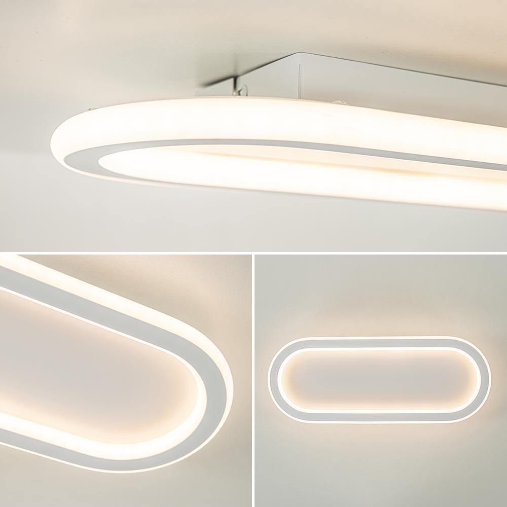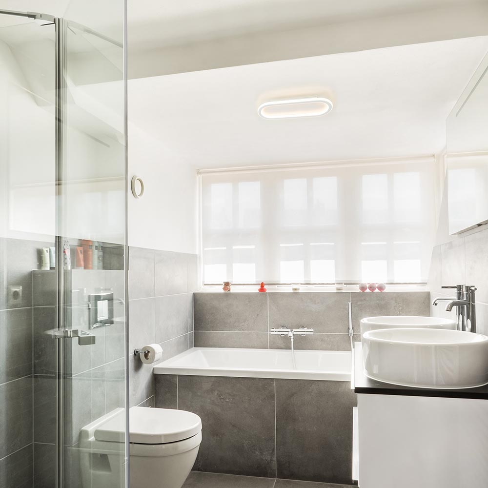 Deze LED plafondlamp is een ideale sfeermaker. De ovale plafondlamp is voorzien van LED verlichting met een 3-standen dim functie. Dit werkt gemakkelijk met de gewone wandschakelaar. Er is dus geen externe dimmer nodig. De plafondlamp is uitgevoerd in het wit en heeft een moderne look. Door de afwerking is de plafondlamp IP44 goedgekeurd waardoor deze ook in de badkamer kan worden toegepast. De LED lamp kan zowel als plafondlamp en wandlamp worden gemonteerd.