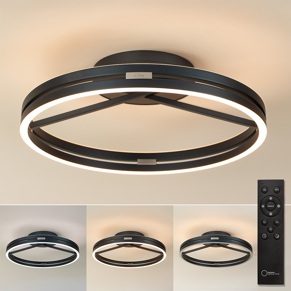 Deze moderne plafondlamp is voorzien van 2 ringen die beide zijn voorzien van geïntergreerd LED. De samenwerking van de 2 ringen zorgt voor een prachtige lichtverdeling met een up & down effect. Via de meegeleverde afstands bediening is de lamp helemaal naar smaak in te stellen. U kunt onder andere de kleur temperatuur, lichtsterkte & timer van de lamp instellen. Ook kunnen de ringen onafhankelijk van elkaar bediend worden. Zo zet u bijvoorbeeld de bovenste ring zachtjes aan zonder uw partner wakker te maken. Handig!