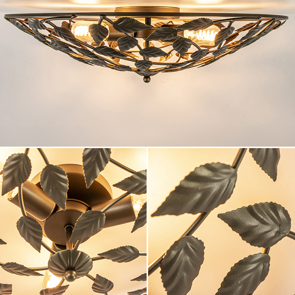 Haal de natuur in huis met deze sfeervolle plafonniere. Het blaadjes-design van de kap van de plafondlamp zorgt voor een hele aangenaam gevoel. Uitgevoerd in een warm bruin-bronze kleur. Deze elegante lamp voegt echt iets toe aan uw huis, niet alleen functioneel maar ook heel erg decoratief.