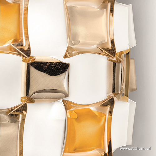 Design van Italiaans komaf. Deze luxe plafondlamp van ‘Slamp’ is ontworpen door Adriano Rachele en straalt een en al luxe en glamour uit. De plafonnière is geïnspireerd op juwelen uit de haute couture. De plafondlamp doet dan ook meteen denken aan edelstenen en diamanten. De geometrische kap bestaat uit losse elementen die samen de kap vormen en zijn gemaakt van opalflex en lentiflex, beide materialen die zorgen voor de extra luxe uitstraling. De kap wordt met een magnetisch ophangsysteem aan de bevestiging opgehangen en de lamp is geschikt voor zowel het plafond als de muur. Waar deze Italiaanse designlamp ook komt te hangen, het geeft meteen sfeer, luxe en vooral glamour aan het interieur.