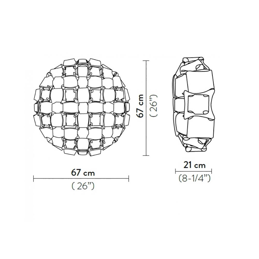 Design van Italiaans komaf. Deze luxe plafondlamp van ‘Slamp’ is ontworpen door Adriano Rachele en straalt een en al luxe en glamour uit. De plafonnière is geïnspireerd op juwelen uit de haute couture. De plafondlamp doet dan ook meteen denken aan edelstenen en diamanten. De geometrische kap bestaat uit losse elementen die samen de kap vormen en zijn gemaakt van opalflex en lentiflex, beide materialen die zorgen voor de extra luxe uitstraling. De kap wordt met een magnetisch ophangsysteem aan de bevestiging opgehangen en de lamp is geschikt voor zowel het plafond als de muur. Waar deze Italiaanse designlamp ook komt te hangen, het geeft meteen sfeer, luxe en vooral glamour aan het interieur.