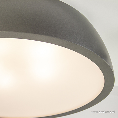 Met deze lamp aan het plafond maak je duidelijk een statement. De 70 cm grote lamp valt direct op en zorgt met de 5 lichtbronnen voor goede lichtintensiteit. Het fijne aan deze lamp is, dat deze is afgeschermd met een matte plaat zodat er niet in de lichtbronnen wordt gekeken en het licht een warme en zachte sfeer heeft. Doordat de lamp van kunststof is is deze net zwaar en kan deze makkelijk worden opgehangen. De plafonnière wordt aan het plafond bevestigd met een ronde plafondplaat. Door het grijs krijgt de lamp een robuustere look en past dan ook mooi in een industrieel, landelijk of modern interieur. Ideaal in de slaapkamer, hal of woonkamer.