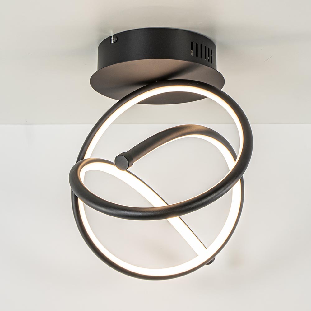 Een moderne plafondlamp met een strak design. De mat zwarte plafonnière is gemaakt in een sierlijke vorm waar LED strips in zitten verwerkt. Dit geeft de moderne lamp een speelse look en het LED zorgt er tegelijk voor dat de lamp energiezuinig is. Groot voordeel van deze moderne plafondlamp is ook dat deze in 3 standen is te dimmen. Hier is geen LED-dimmer voor nodig maar kan gewoon met de wandschakelaar. U dimt de lamp gemakkelijk door meerdere keren op de schakelaar te drukken. Dit maakt de lamp prima geschikt voor een woonkamer, keuken, slaapkamer of hal.