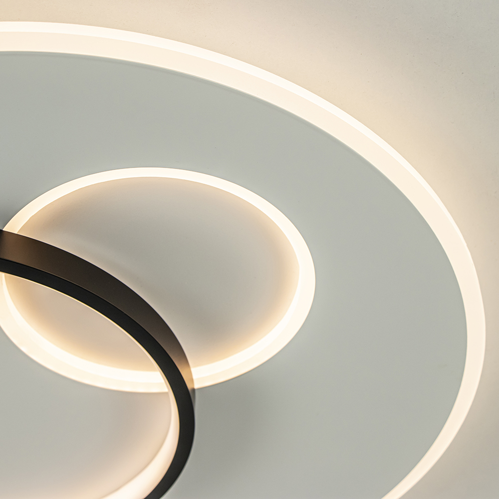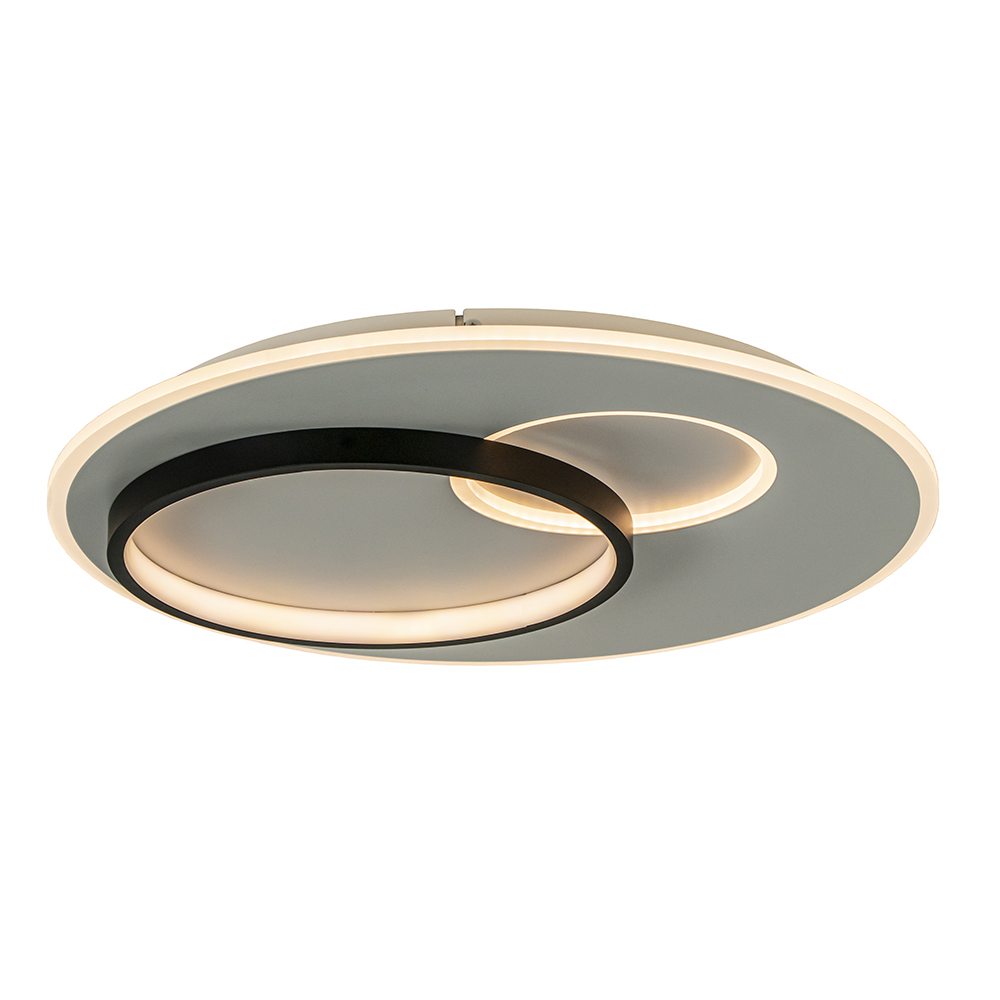 Deze grote LED plafondlamp is een prachtige toevoeging aan het interieur. Strak van design en sfeervol in effect. De ronde plafonnière heeft 3 lichtpunten die mooi zijn verwerkt in de plaat. Zo licht de rand op, is er een kleine ring te vinden in de plaat en zit er op de witte plaat nog een zwarte ring die ook oplicht. Zo wordt er een ruime lichtverspreiding mogelijk gemaakt en ontstaat er een speels effect. De grote LED plafondlamp is dimbaar middels een externe dimmer (exclusief).