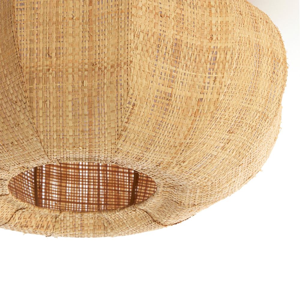Details: – Afmeting: Ø50×23 cm – Kap: Ø50×21 cm – Bevestiging: Ø10×2,2 cm – Materiaal: Rotan & Metaal – Kleur: Naturel & Wit – Fitting: E27