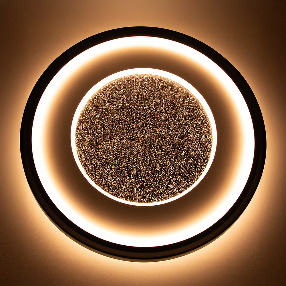 Geef je interieur een stijlvolle upgrade met de Sparkle plafondlamp. Een moderne blikvanger die elegantie en functionaliteit naadloos combineert. Het strakke ronde ontwerp wordt versterkt door een zwarte rand en een centraal paneel met een subtiel glittereffect, dat zorgt voor een verfijnde schittering zodra de lamp brandt. De geïntegreerde LED-verlichting verspreidt een aangenaam warm wit licht en is bovendien dimbaar in drie standen via de standaard wandschakelaar. Zo pas je eenvoudig de lichtintensiteit aan, van functioneel tot sfeervol. Perfect voor onderandere de hal, woonkamer en slaapkamer.