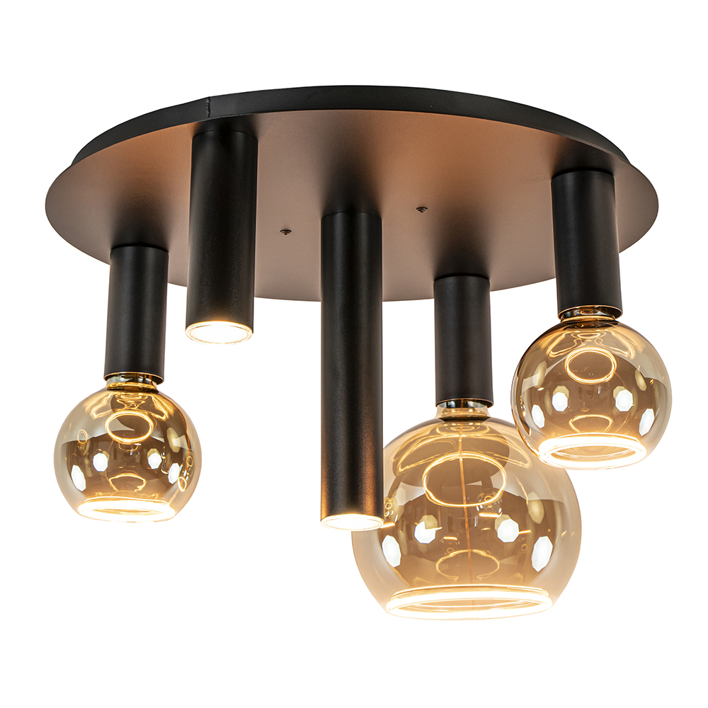 Details: – afm: Ø50×27,5 cm – bevestiging: Ø46×2,5 cm – metaal – zwart – E27 + GU10 – exclusief lichtbronnen – dimbaar (exclusief)