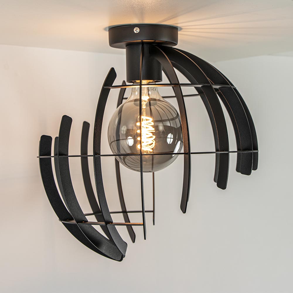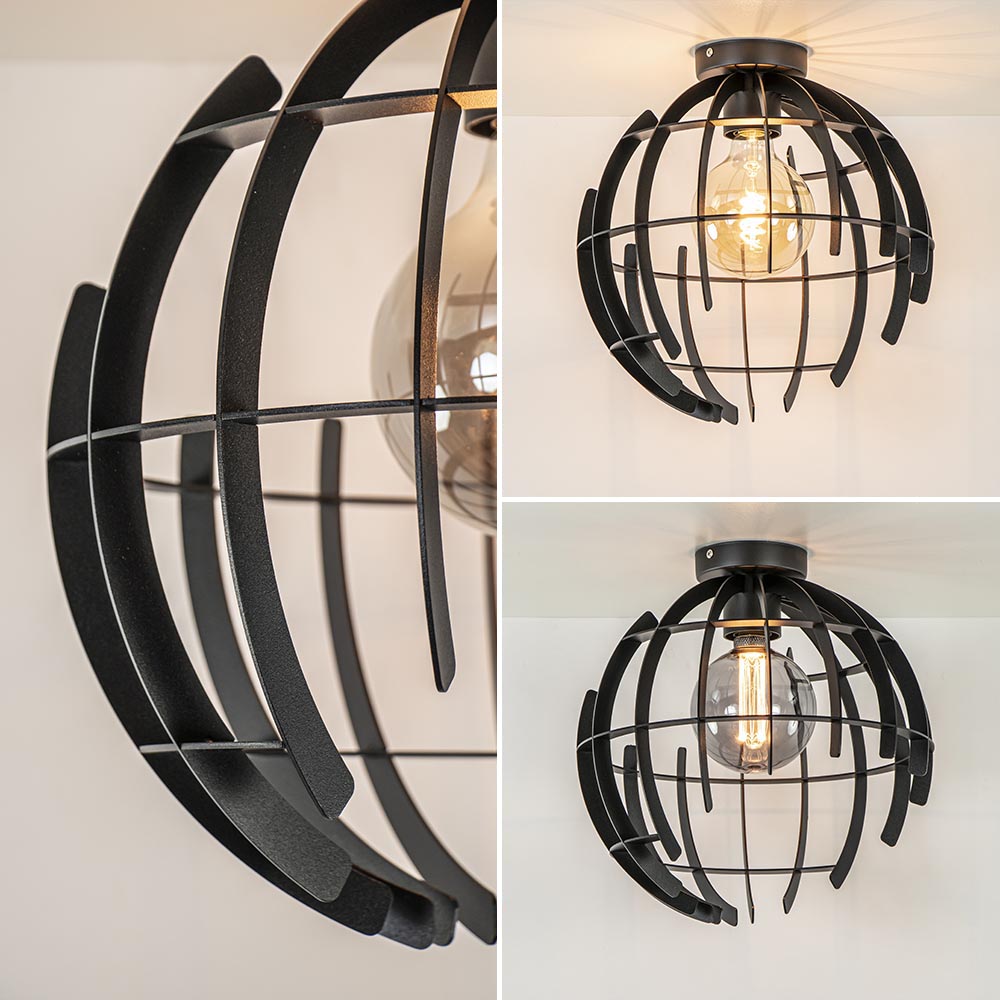 Stoer van uiterlijk en strak van design. Deze plafondlamp is gemaakt van metaal en afgewerkt met een mat zwarte finish. Dit geeft de plafondlamp die stoere en tevens stijlvolle look. De plafondlamp heeft een doorsnede van 35 cm en is 37 cm hoog. Ideaal voor een hal, slaapkamer of de woonkamer. De bol is niet volledig gesloten maar verspringt, waardoor er een speels design ontstaat. Het geeft de mat zwarte plafondlamp net even een rauwer randje. De ronde plafondlamp is dimbaar middels een externe dimmer (exclusief) en wordt geleverd zonder lichtbron (E27).