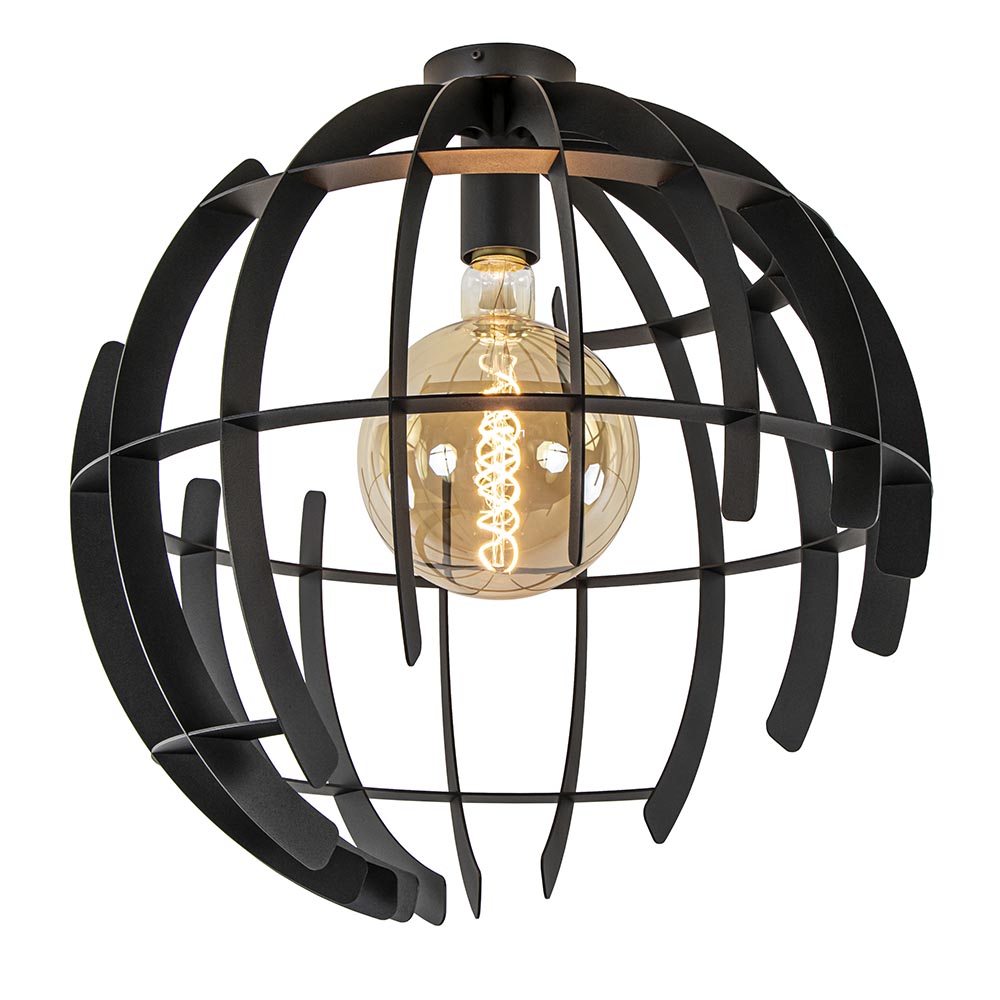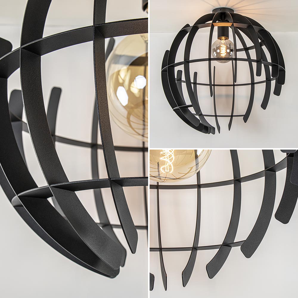 Stoer van uiterlijk en strak van design. Deze plafondlamp is gemaakt van metaal en afgewerkt met een mat zwarte finish. Dit geeft de plafondlamp die stoere en tevens stijlvolle look. De plafondlamp heeft een doorsnede van 60 cm en is 62 cm hoog. Ideaal voor een hal, slaapkamer of de woonkamer. De bol is niet volledig gesloten maar verspringt, waardoor er een speels design ontstaat. Het geeft de grote plafondlamp net even een rauwer randje. De ronde plafondlamp is dimbaar middels een externe dimmer (exclusief) en wordt geleverd zonder lichtbron (E27).