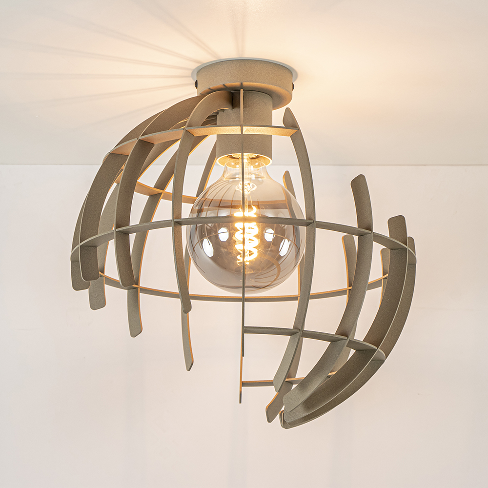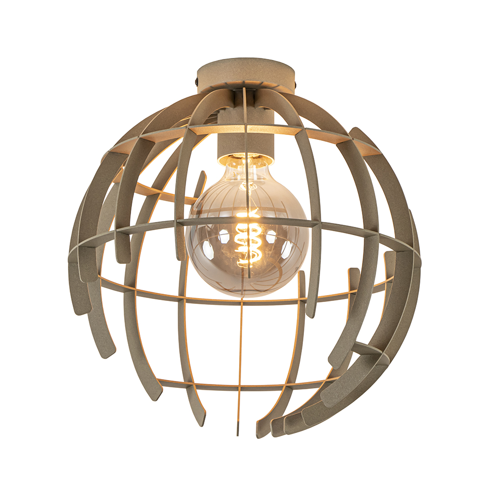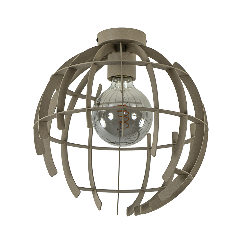 Stoer van uiterlijk en strak van design. Deze plafondlamp is gemaakt van metaal en afgewerkt met een quartz finish. Dit geeft de plafondlamp die stoere en tevens stijlvolle look. De plafondlamp heeft een doorsnede van 35 cm en is 37 cm hoog. Ideaal voor een hal, slaapkamer of de woonkamer. De bol is niet volledig gesloten maar verspringt, waardoor er een speels design ontstaat. Het geeft de ronde plafondlamp net even een rauwer randje. De stoere plafondlamp is dimbaar middels een externe dimmer (exclusief) en wordt geleverd zonder lichtbron (E27).