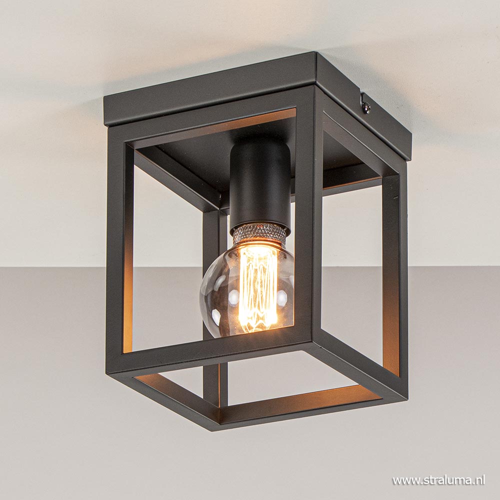 / Lampen / Nachtkastlampen / Plafondlamp vierkant frame klein zwart