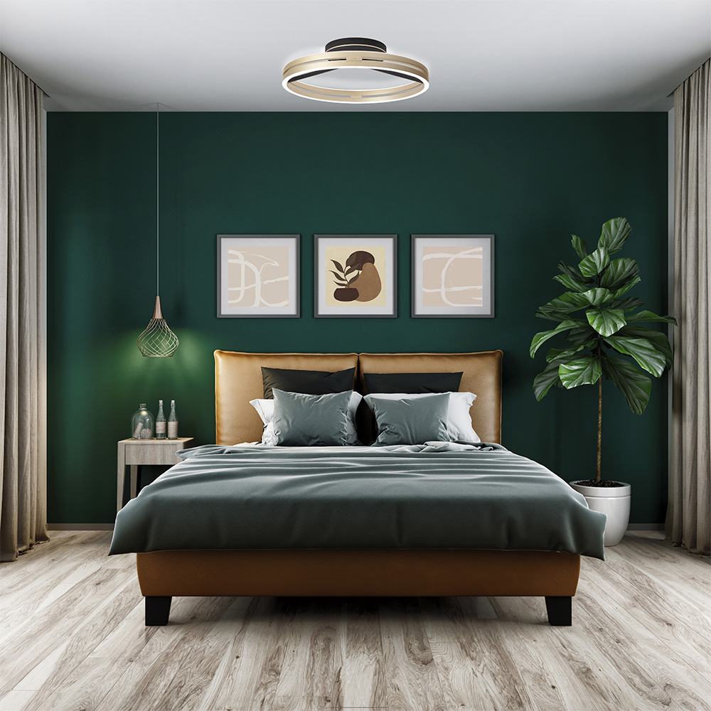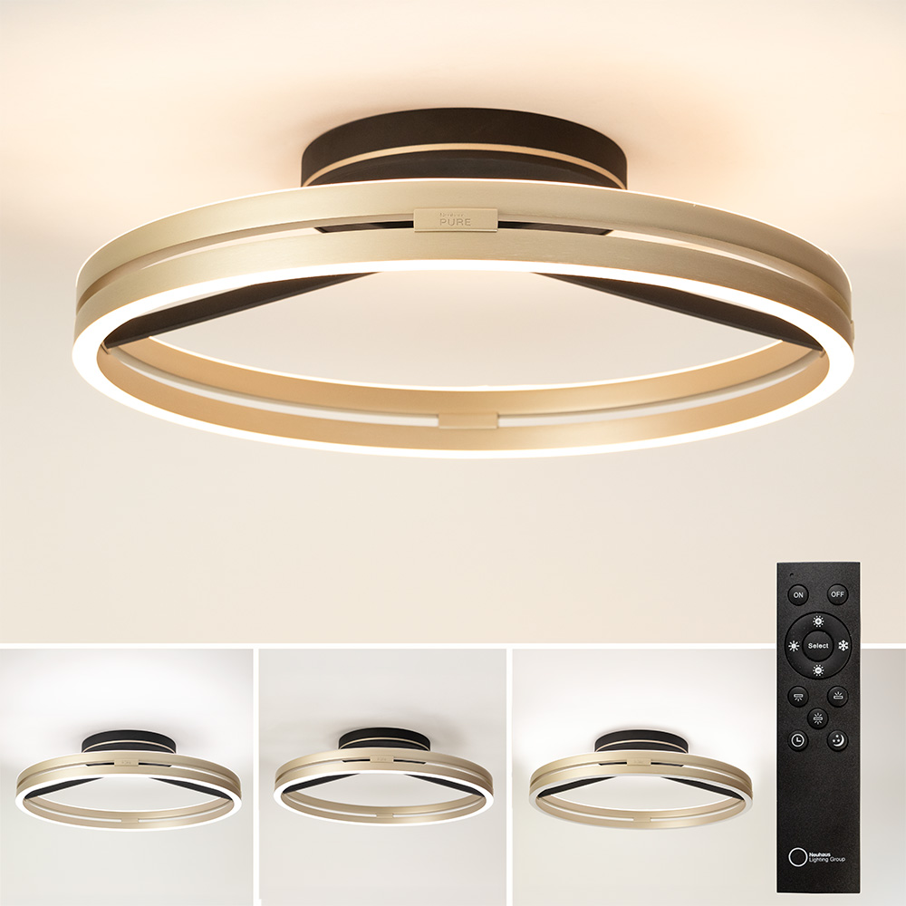 Deze moderne plafondlamp is voorzien van 2 ringen die beide zijn voorzien van geïntergreerd LED. De samenwerking van de 2 ringen zorgt voor een prachtige lichtverdeling met een up & down effect. Via de meegeleverde afstands bediening is de lamp helemaal naar smaak in te stellen. U kunt onder andere de kleur temperatuur, lichtsterkte & timer van de lamp instellen. Ook kunnen de ringen onafhankelijk van elkaar bediend worden. Zo zet u bijvoorbeeld de bovenste ring zachtjes aan zonder uw partner wakker te maken. Handig!