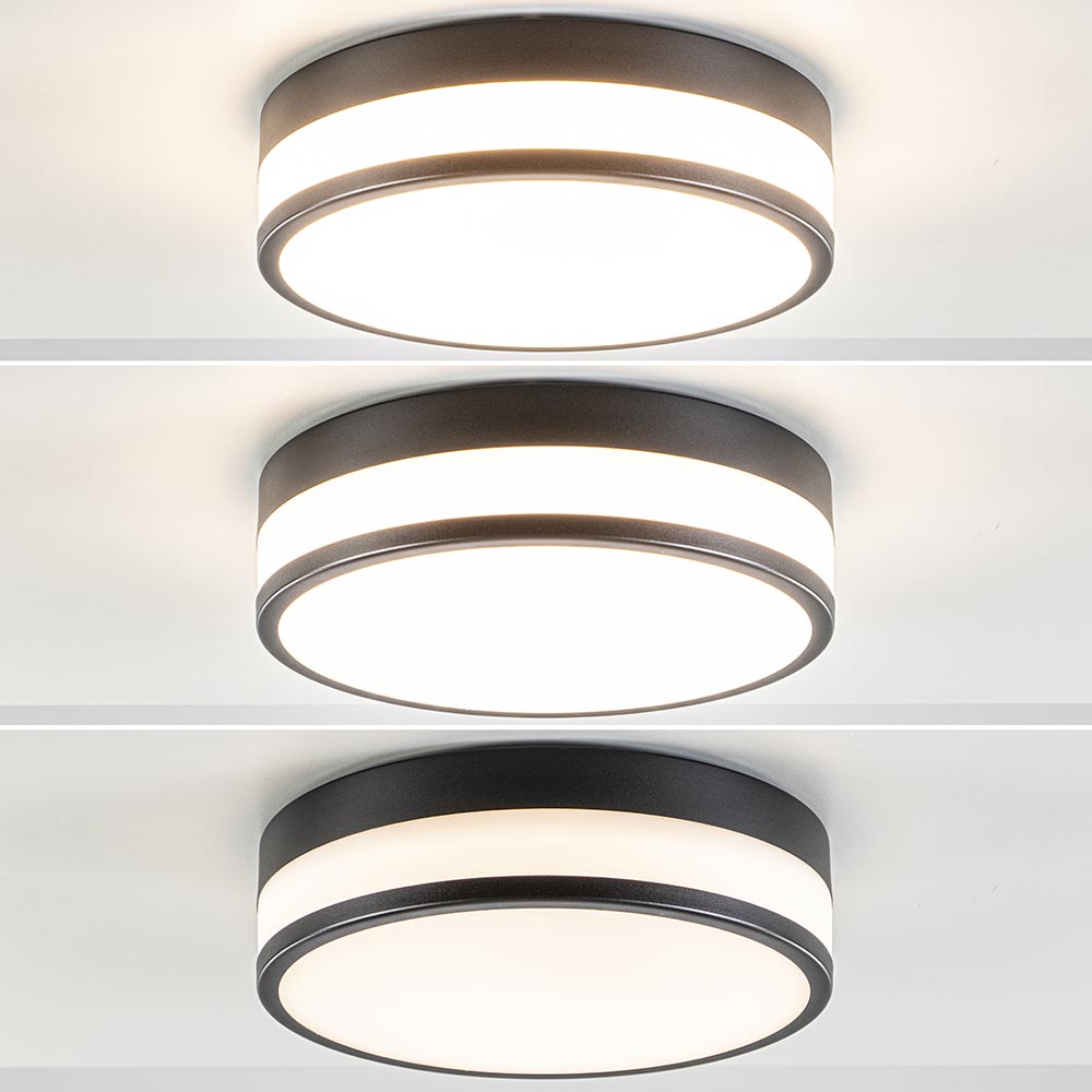 – afmeting: Ø26×8,5 cm – bevestiging: Ø26×3,5 cm – inclusief LED – in 3-standen dimbaar – 3000 Kelvin – 1900 lumen – zwart met opaal glas – IP44 goedgekeurd – energielabel | A+