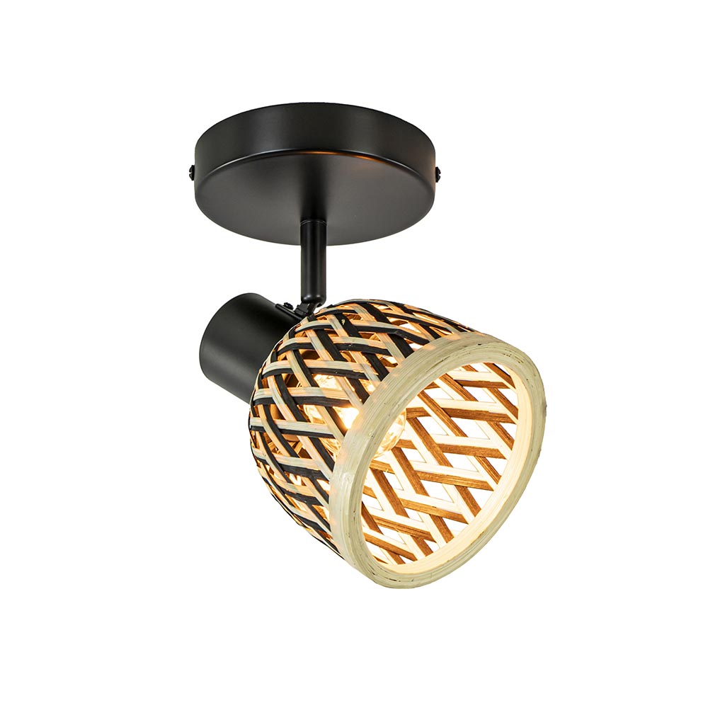 Homepagina / Lampen / Plafondlampen / Plafondlamp/wandlamp zwart met bamboe kap verstelbaar